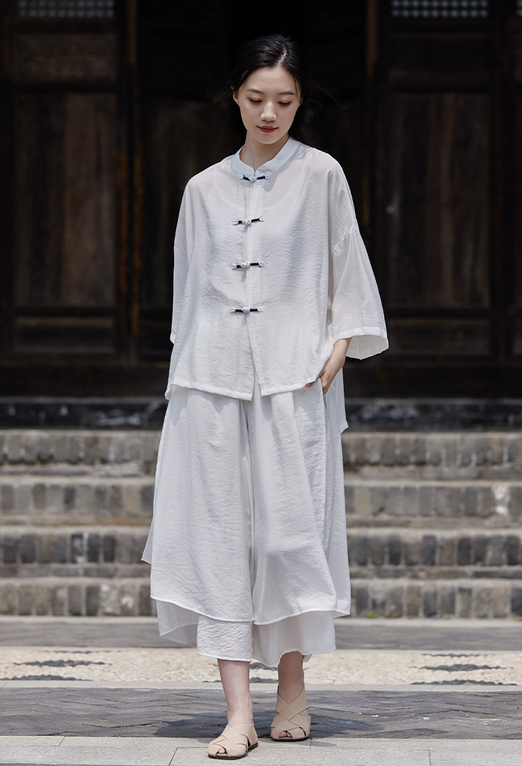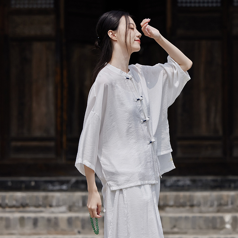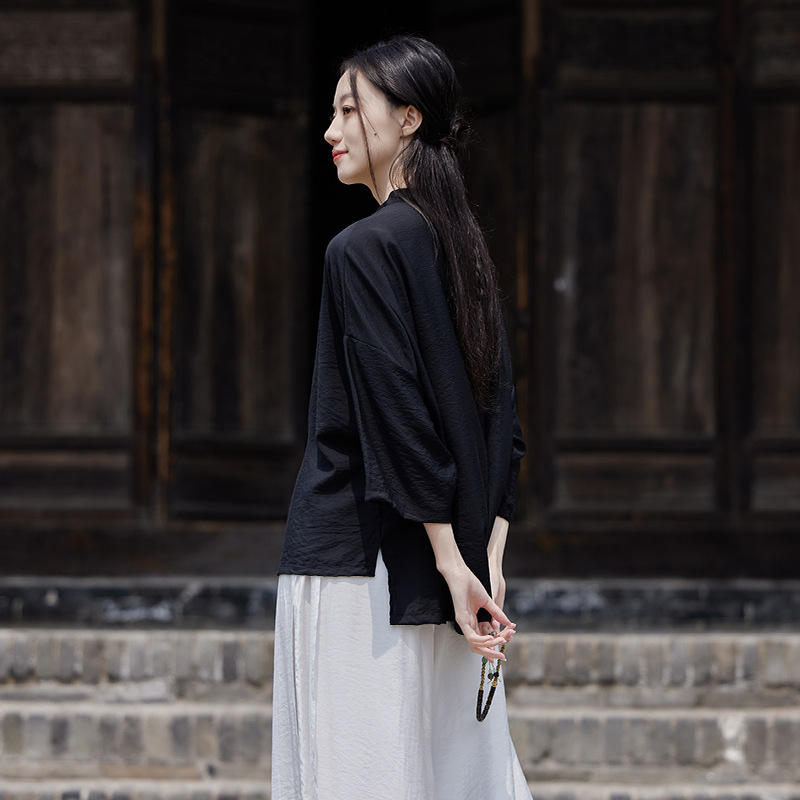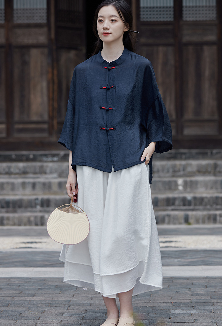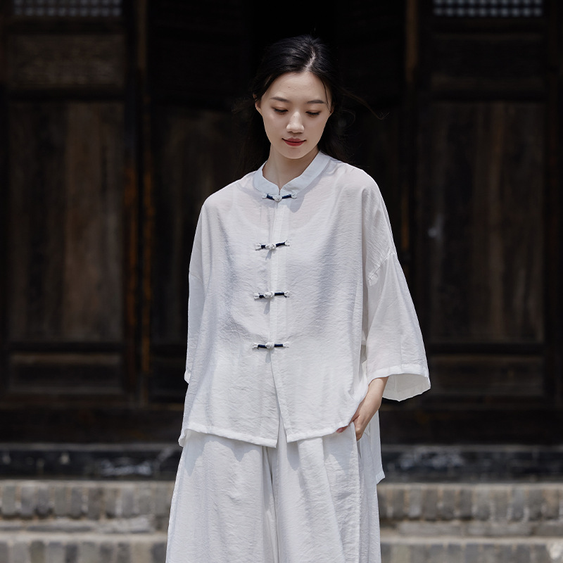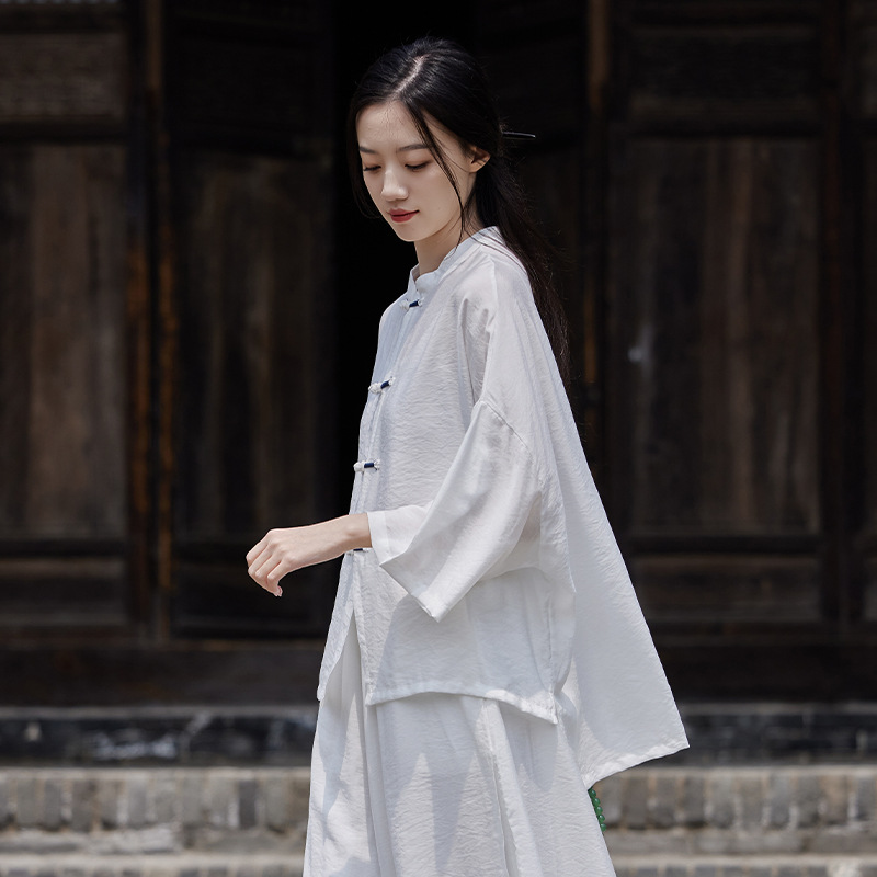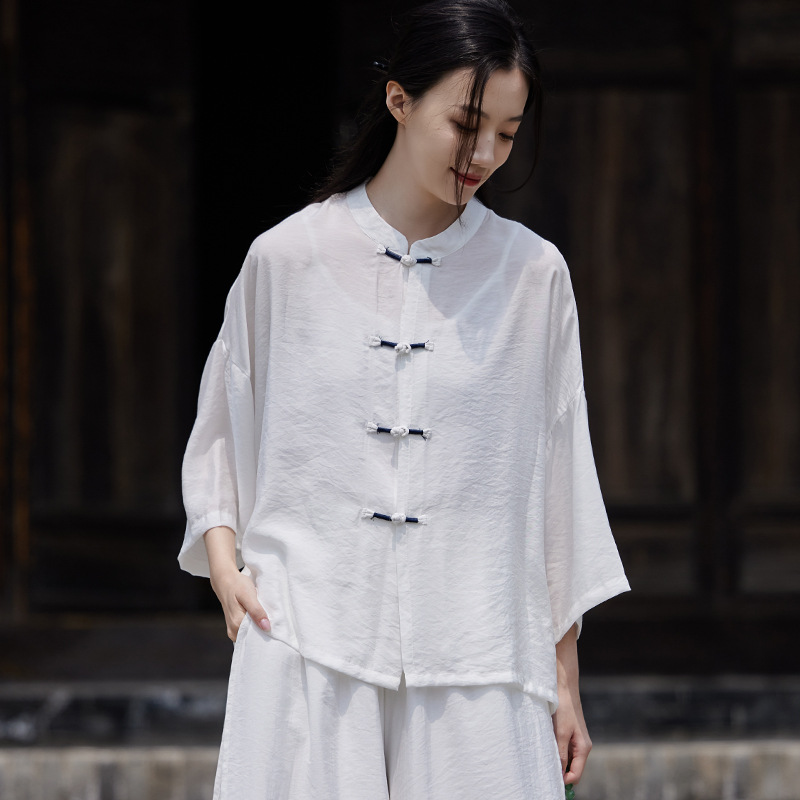 25 봄 가을 신상품 새로운 중국풍 레트로 단추 수제 봉제 셔츠 여성용 자외선 차단 얇은 에어컨 가디건스토어 가기