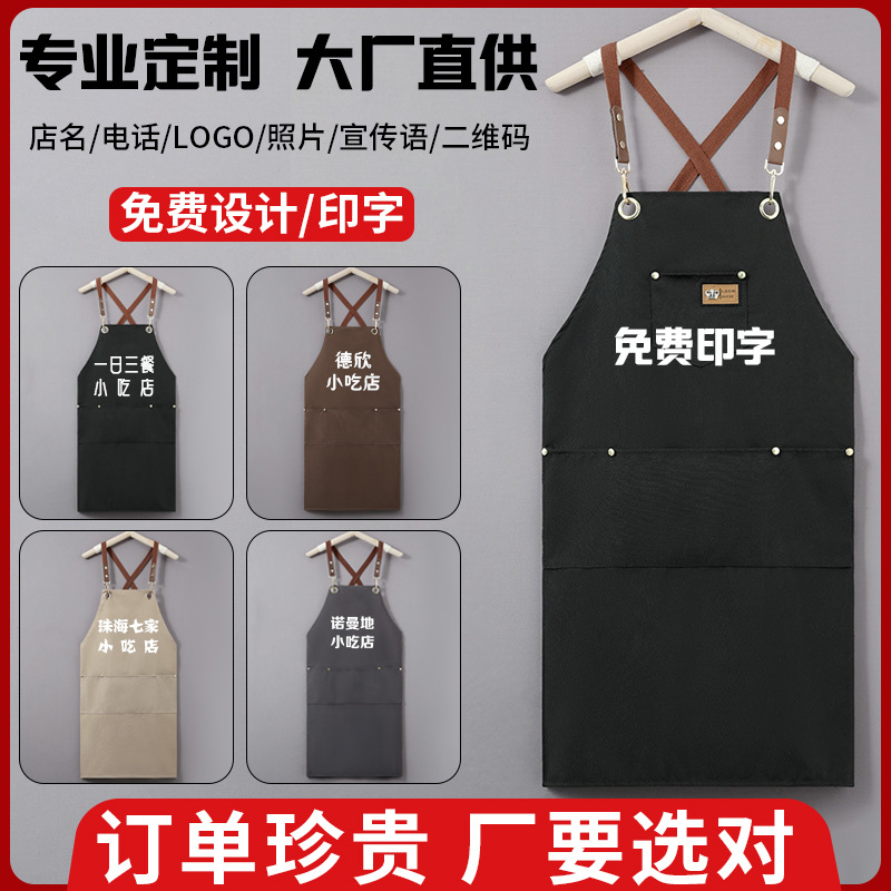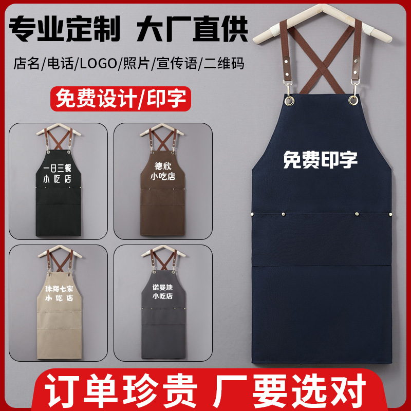 국경 앞치마 방수 및 내유성 주방 케이터링 커피 숍 캔버스 작업복 인쇄 가능한 로고 광고 앞치마 도매