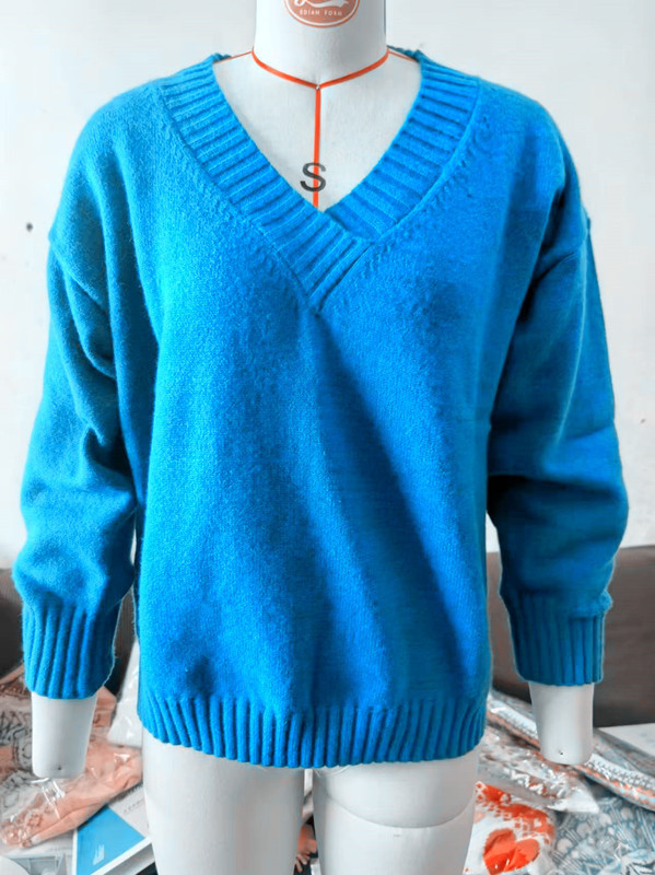 아마존 새로운 국경 유럽 및 미국 스타일 풀오버 스웨터 여성 느슨한 V 넥 캐주얼 올 매치 스웨터