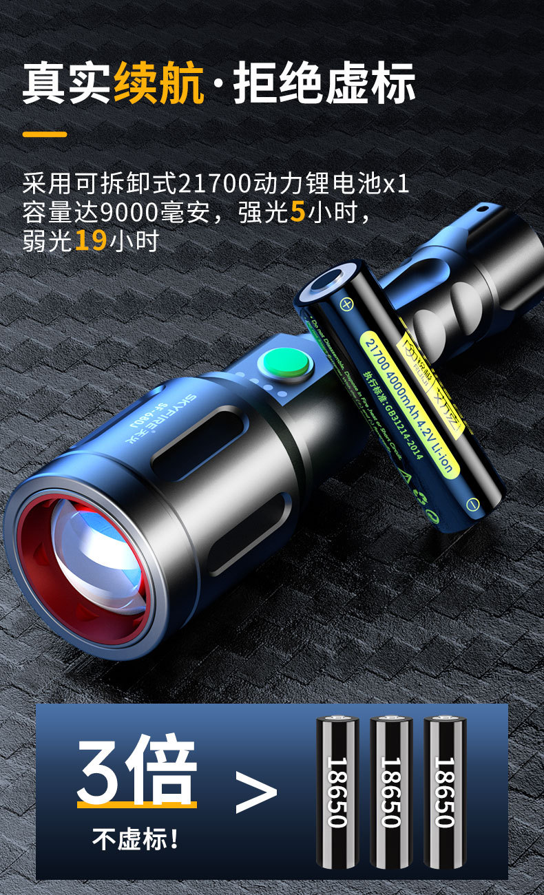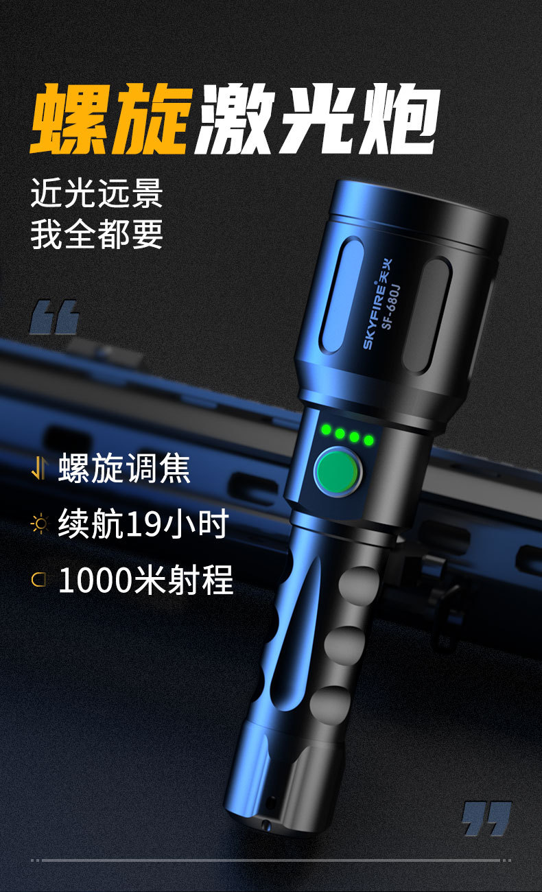 천화 손전등 강력한 집광 장거리 초강력 야외 루멘 초장시간 지속 강한 빛 군사 전술 레이저 라이트