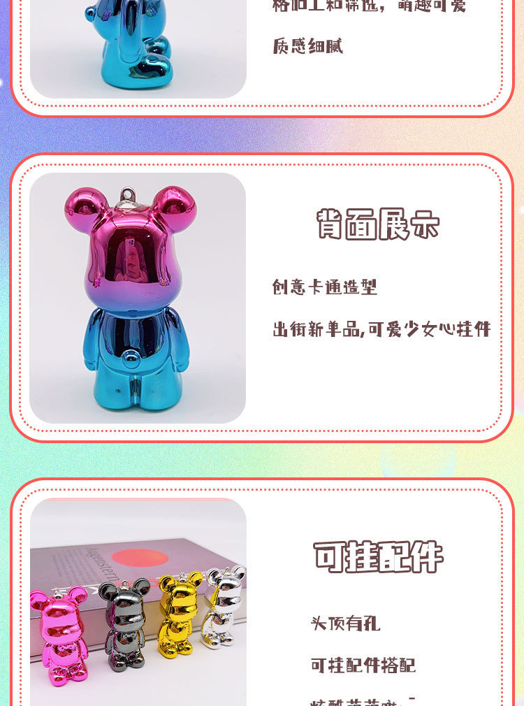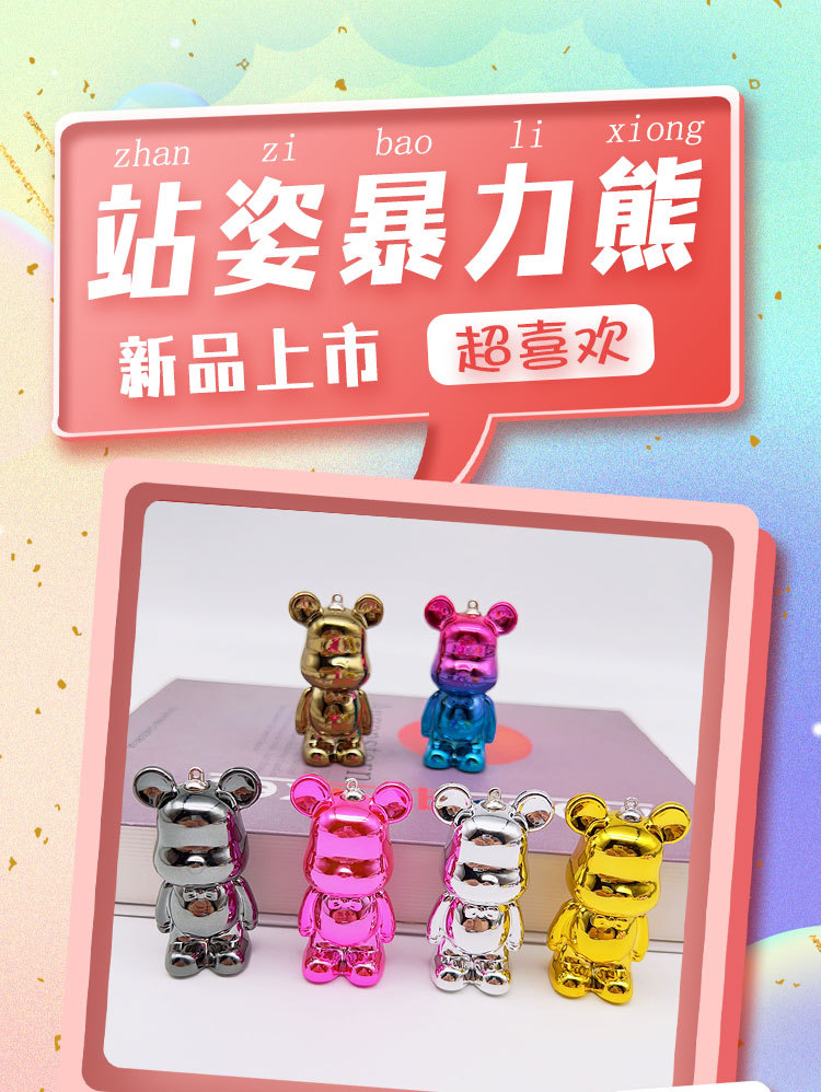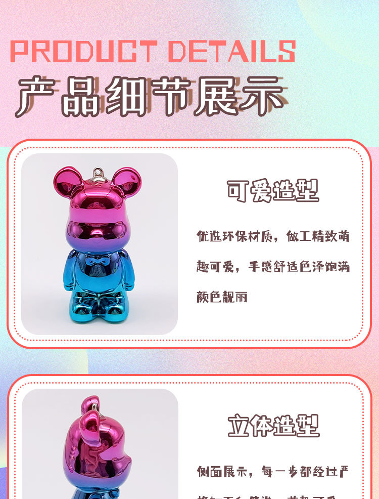 전기 도금 폭력 곰 아크릴 인형 키 체인 액세서리 도매 작은 장식품 장식 작은 상품 키 펜던트스토어 가기