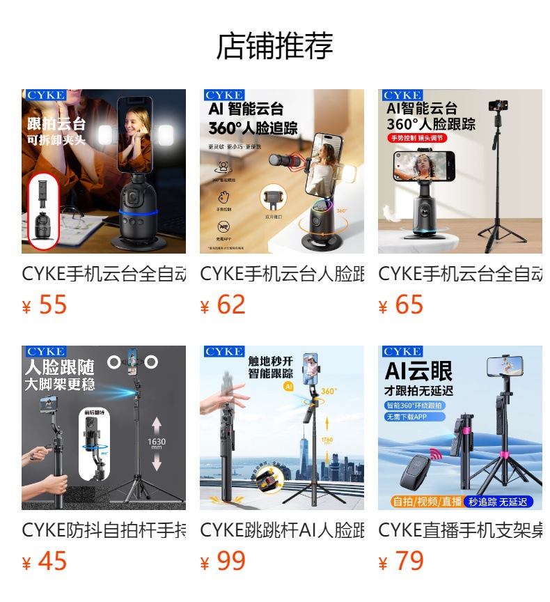 CYKE 휴대 전화 짐벌 완전 자동 후속 아티팩트 데스크탑 라이브 방송 스탠드 안정기 삼각대에 따라 AI 얼굴스토어 가기