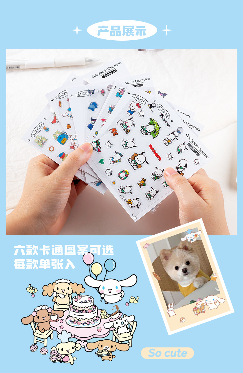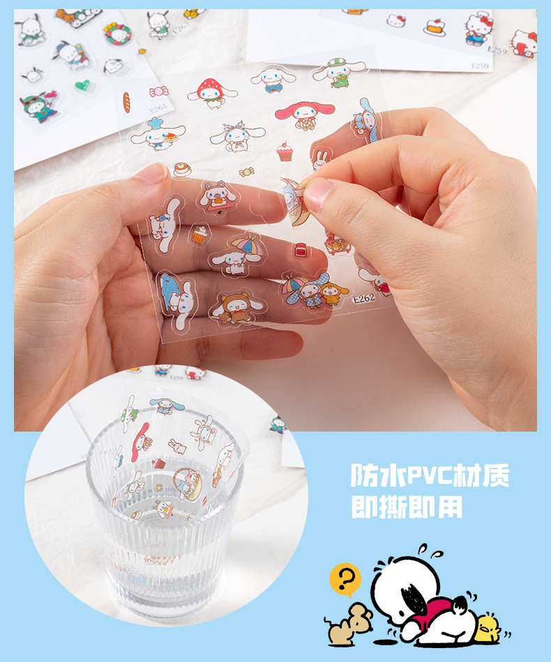 SL-44 산리오 미니 작은 스티커 투명 만화 귀여운 Kulomipacha 개 Merlot Goo 손 계정스토어 가기