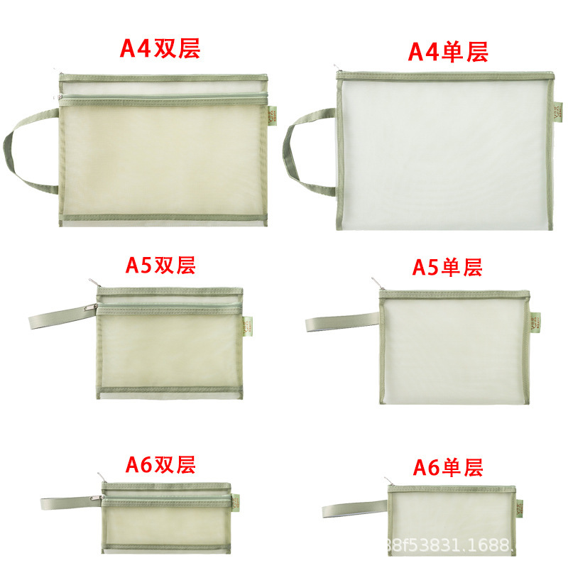모란디 휴대용 보관 파일 가방 나일론 메쉬 가방 휴대 책 가방 A4 더블 레이어 투명 A5A6 지폐 가방 도매스토어 가기