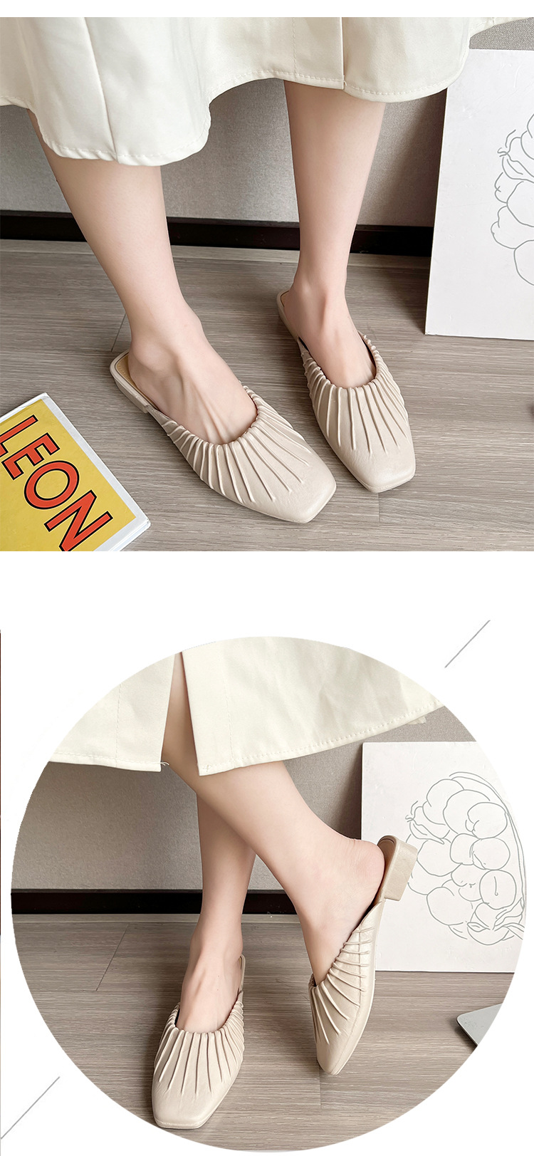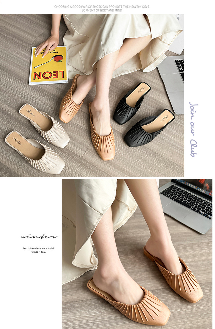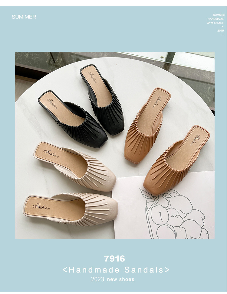 2025년 신형 바오터우 여성용 하프 슬리퍼, Douyin Kuaishou 인기 여름 게으른 슬립온 플랫 미끄럼 방지 여성용 슬리퍼스토어 가기