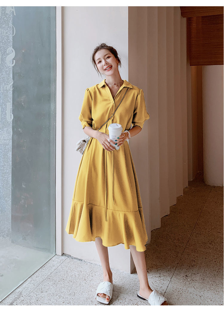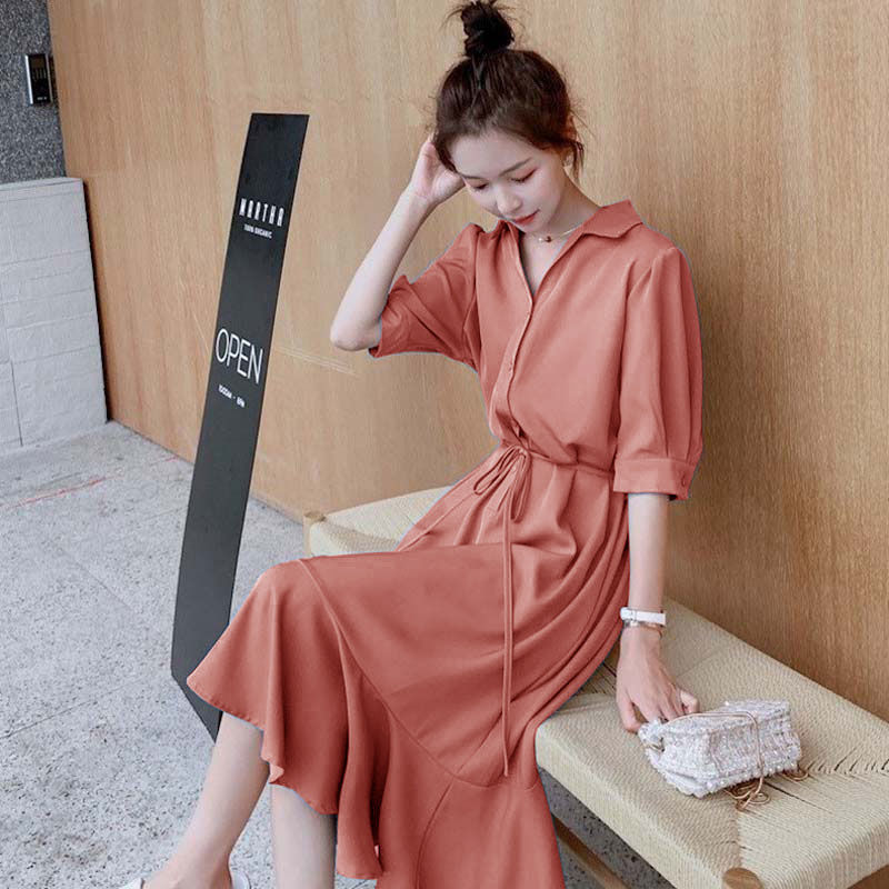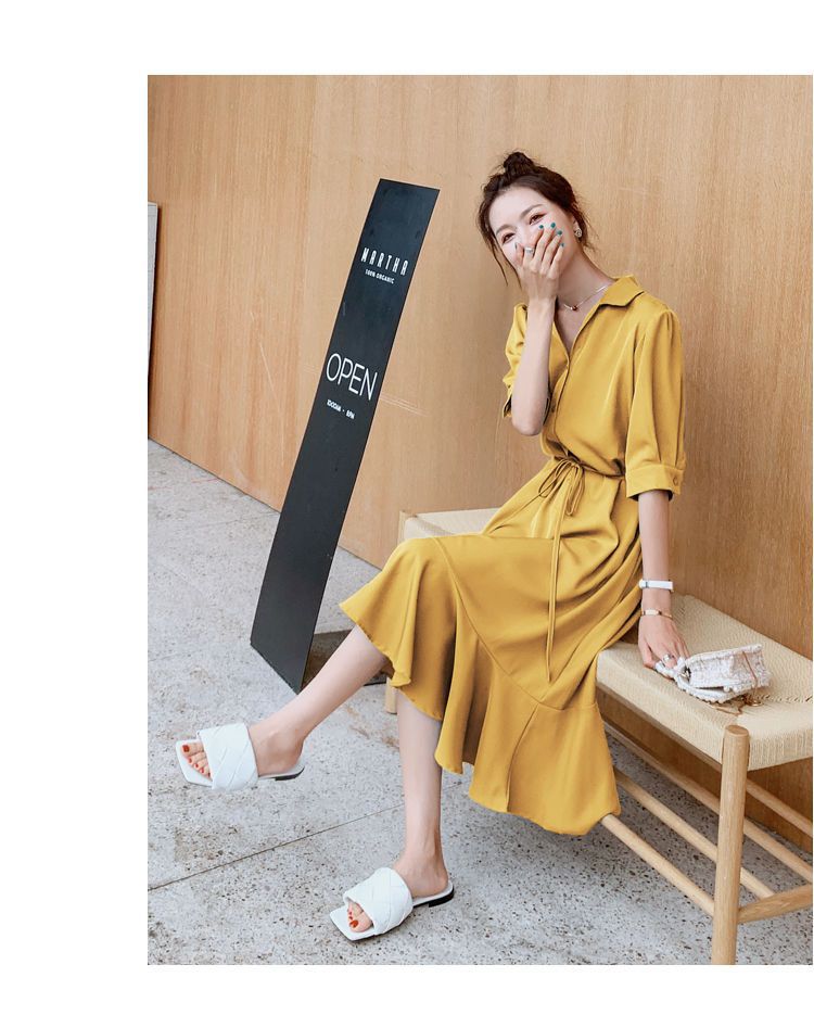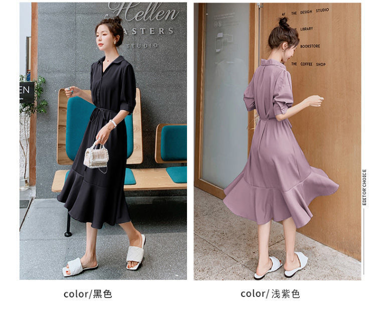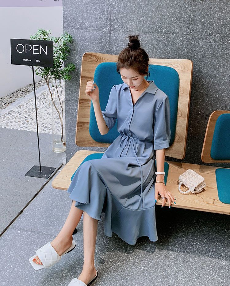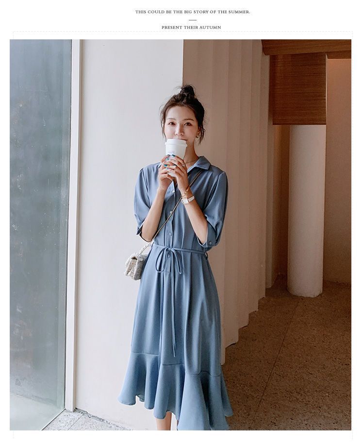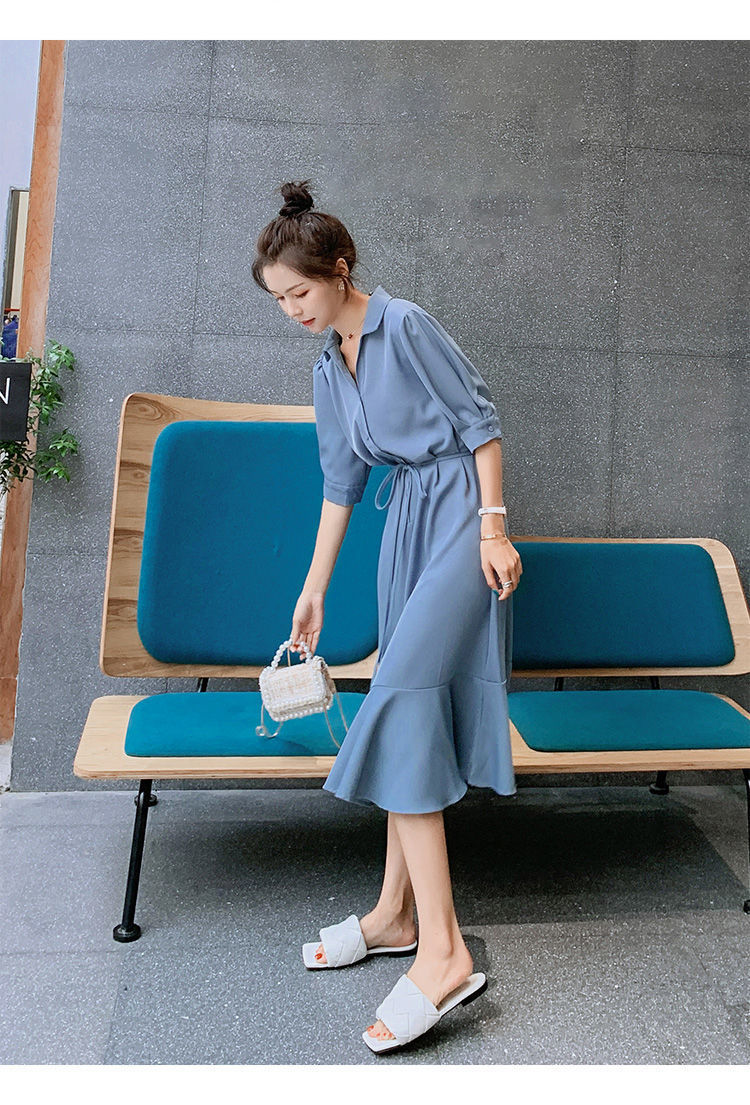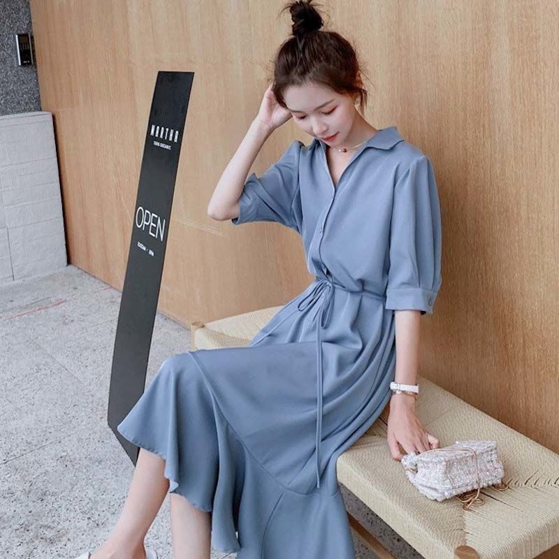 셔츠 쉬폰 원피스 2023 여름 새로운 허리 슬리밍 우아한 빛 성숙한 프랑스 스타일 중간 길이 원피스 트렌디스토어 가기