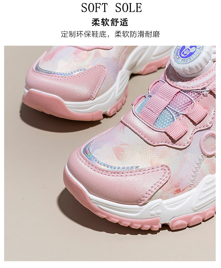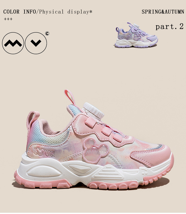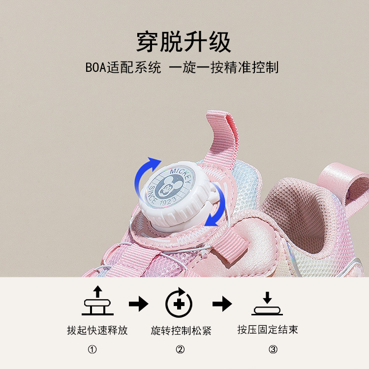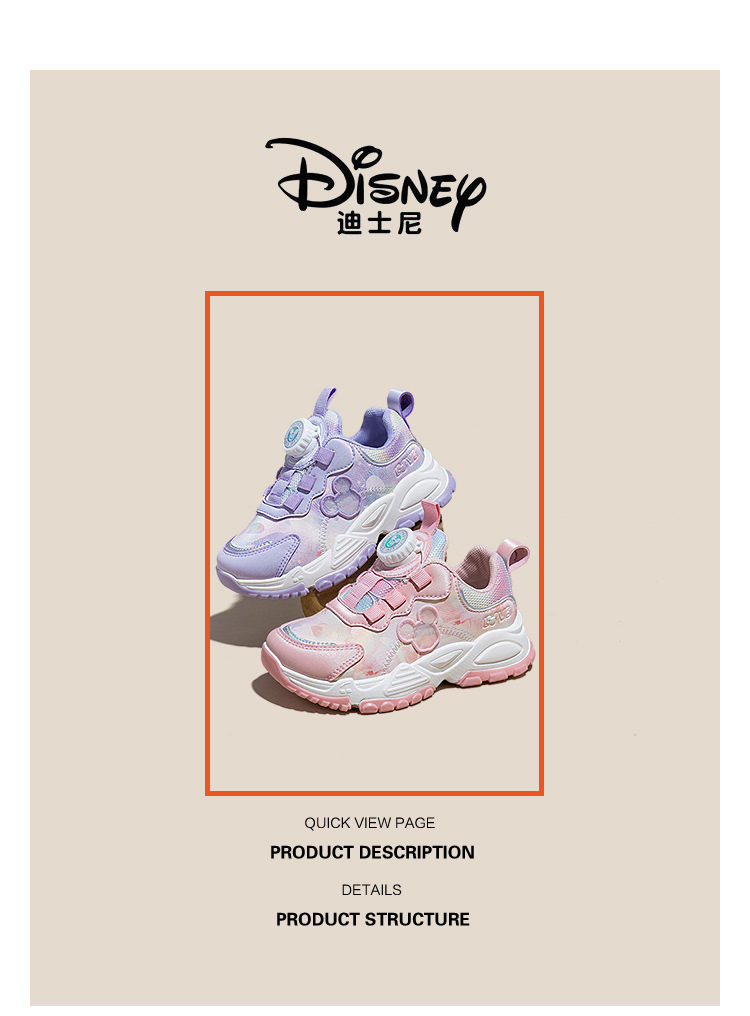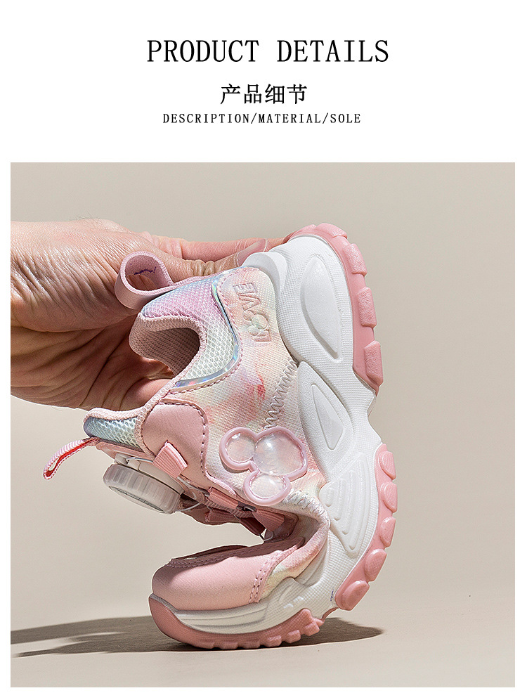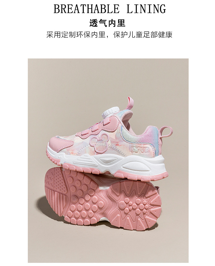 디즈니/디즈니 어린이 신발 어린이 회전 버튼 신발 2024 봄 새 여자 통기성 운동화
