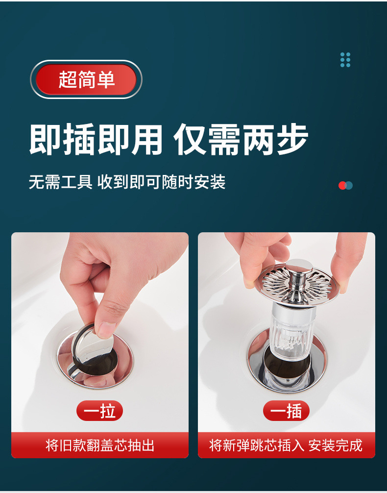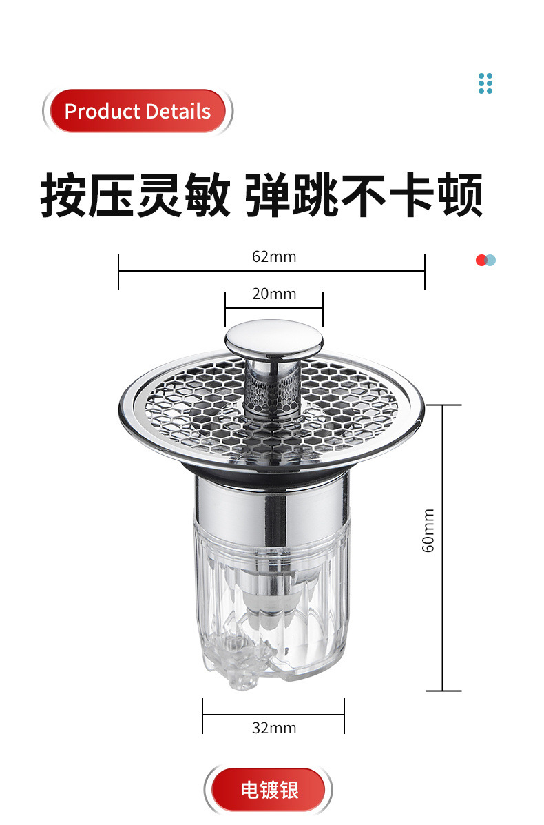 세면기 누수 플러그 세면기 바운스 코어 드레인 프레스형 탈취제 범용 화장실