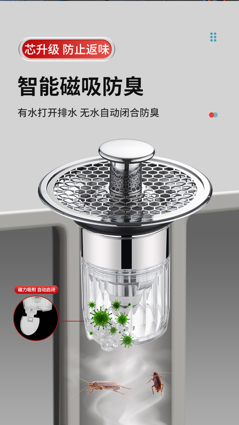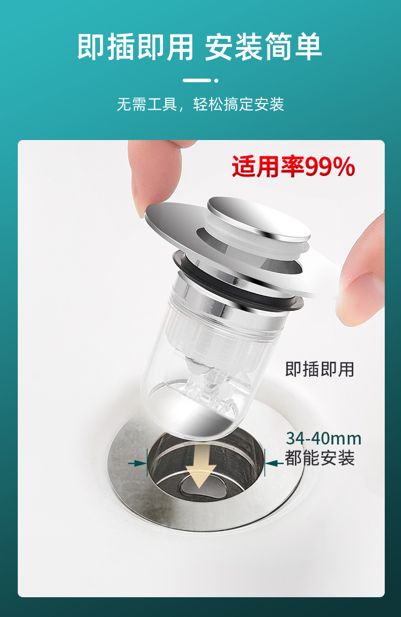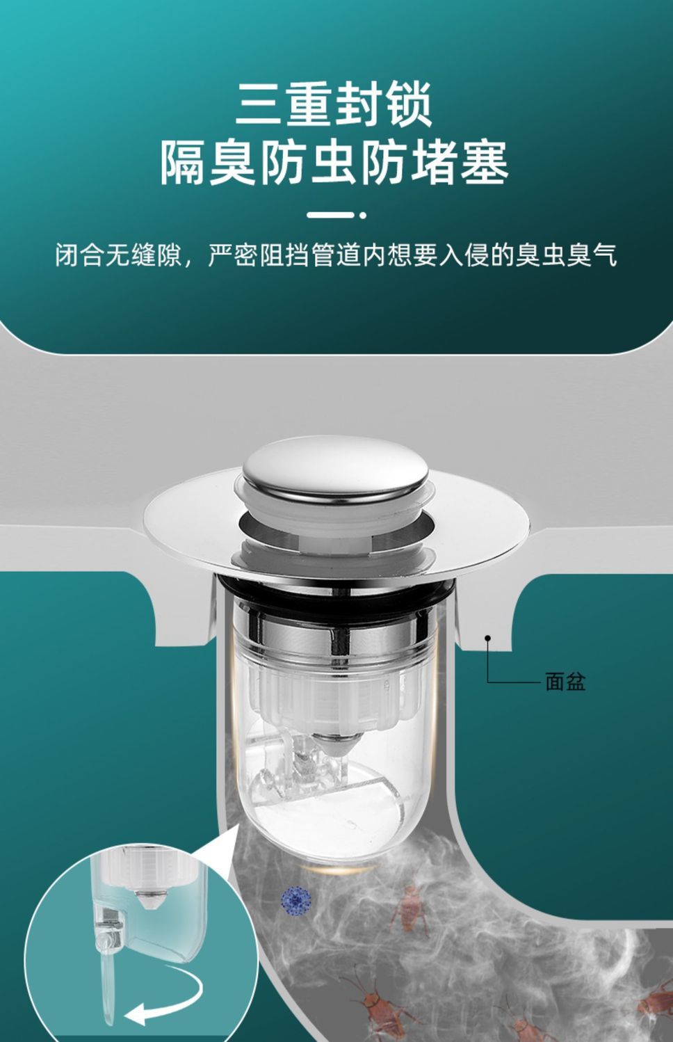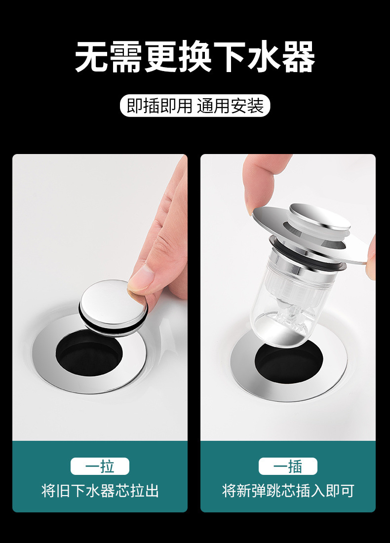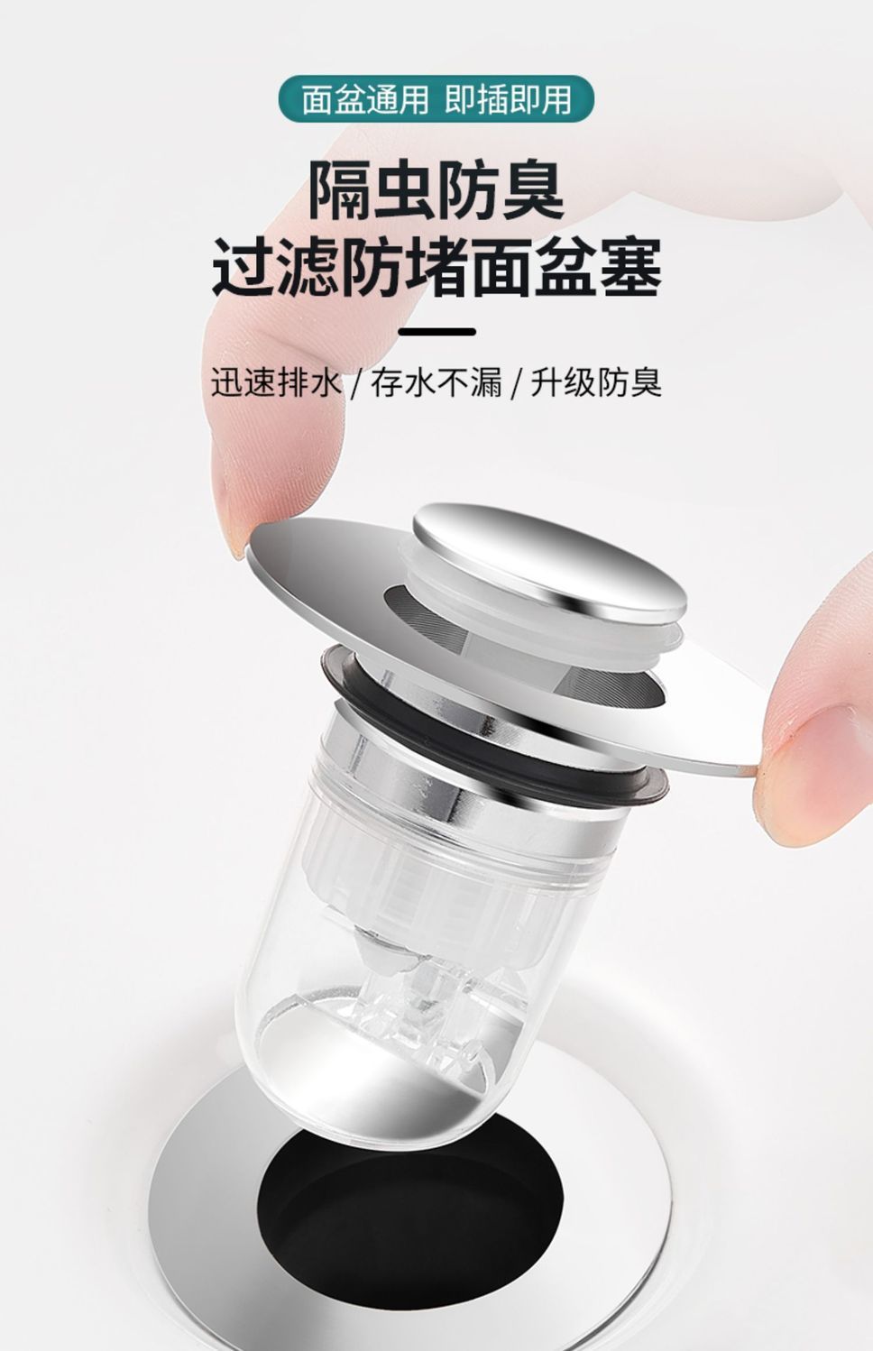 세면기 누수 플러그 세면기 바운스 코어 드레인 프레스형 탈취제 범용 화장실스토어 가기