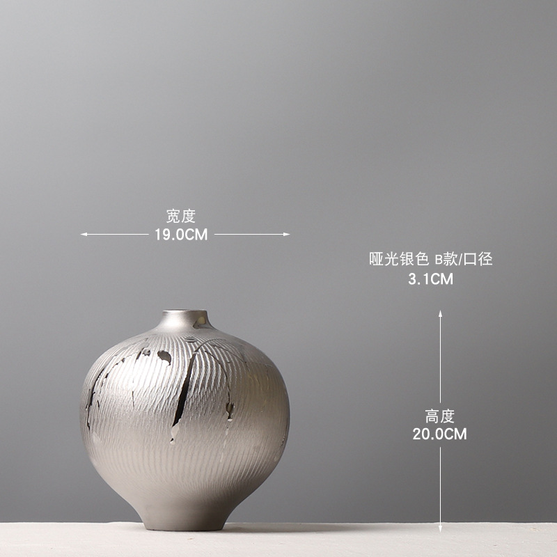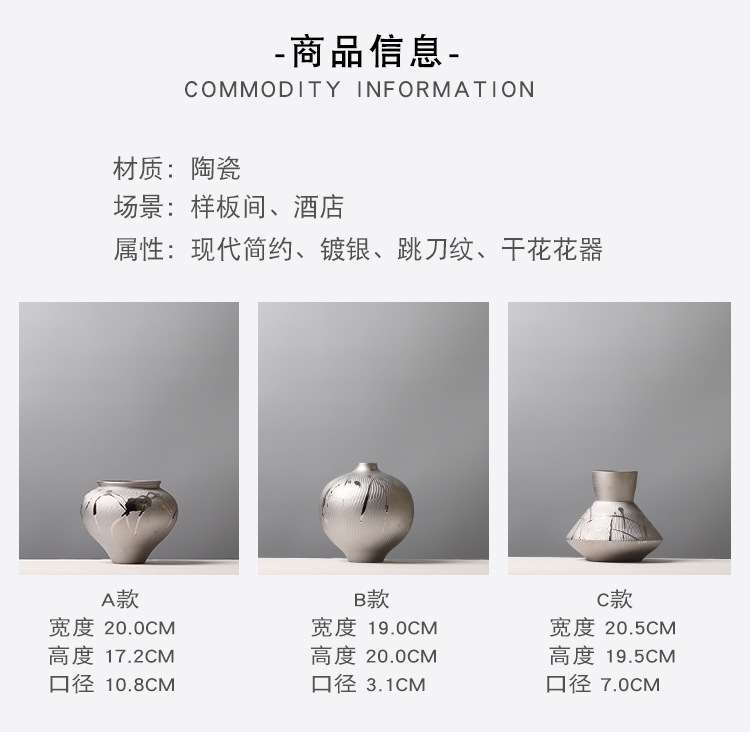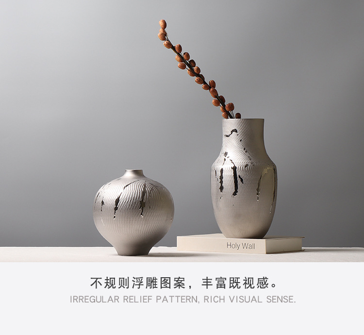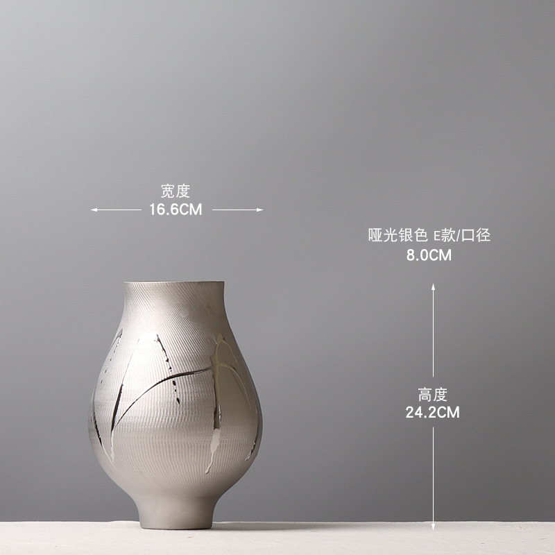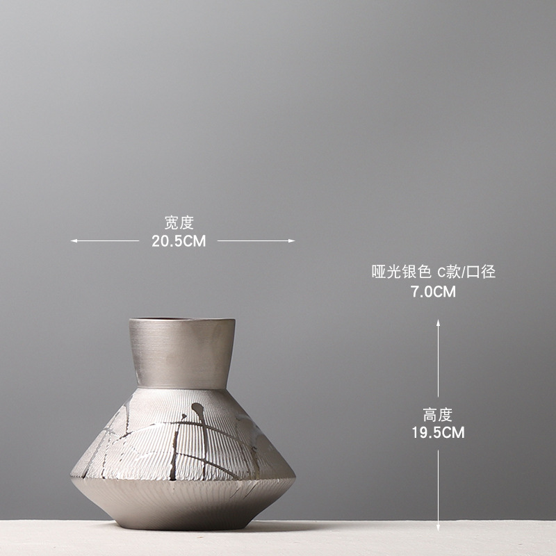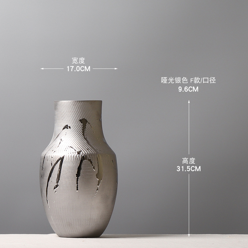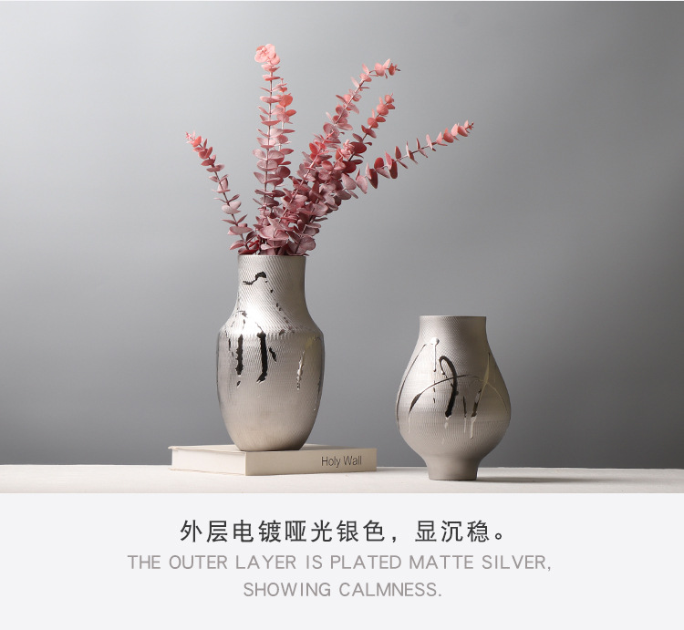 현대 간단한 전기 도금 실버 세라믹 꽃병 호텔 모델 룸 창조적 인 꽃꽂이 장식 부드러운 장식 공예 장식품스토어 가기
