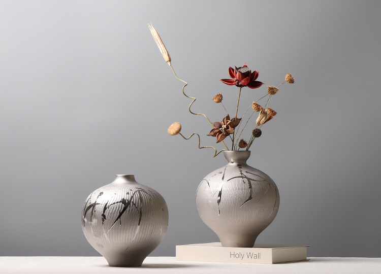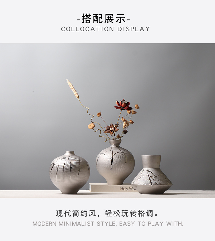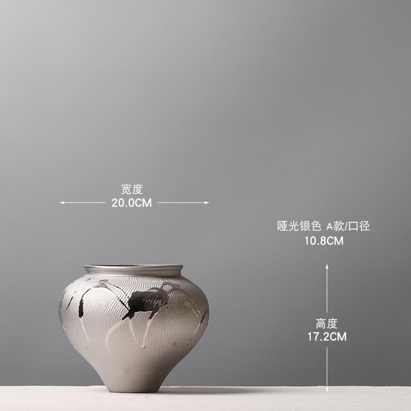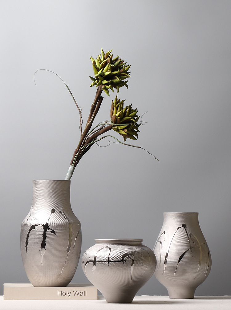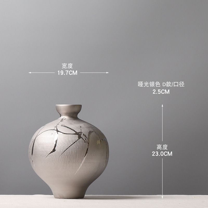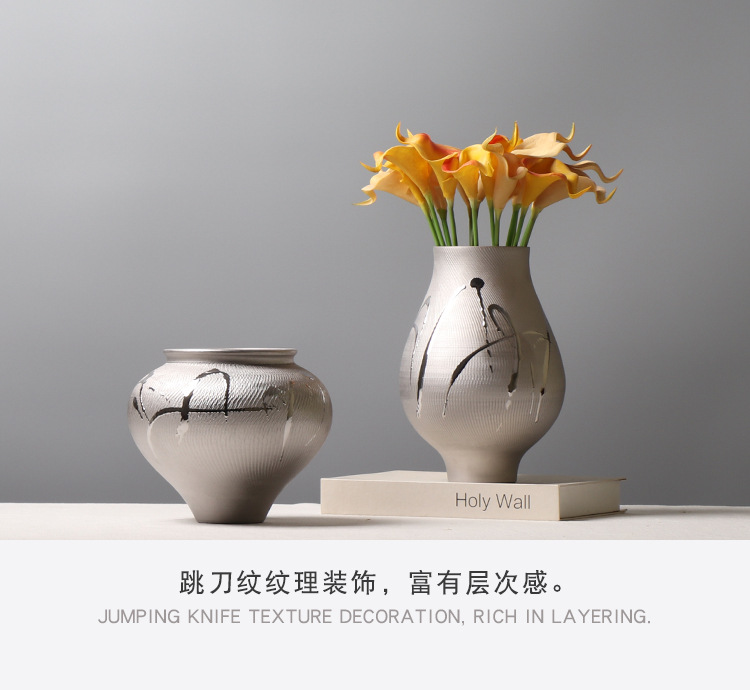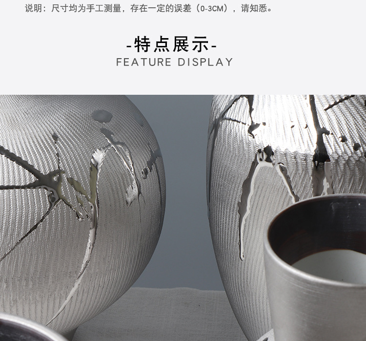 현대 간단한 전기 도금 실버 세라믹 꽃병 호텔 모델 룸 창조적 인 꽃꽂이 장식 부드러운 장식 공예 장식품스토어 가기