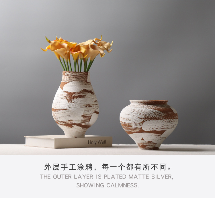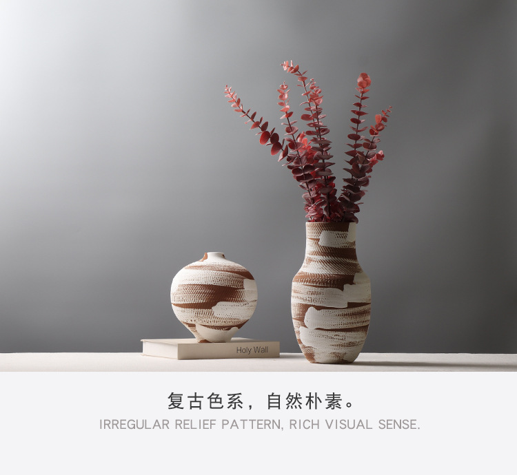 빈티지 세라믹 꽃병 홈스테이 장식 간단한 말린 꽃 가구 거실 와인 캐비닛 부드러운 장식 창조적 인 장식