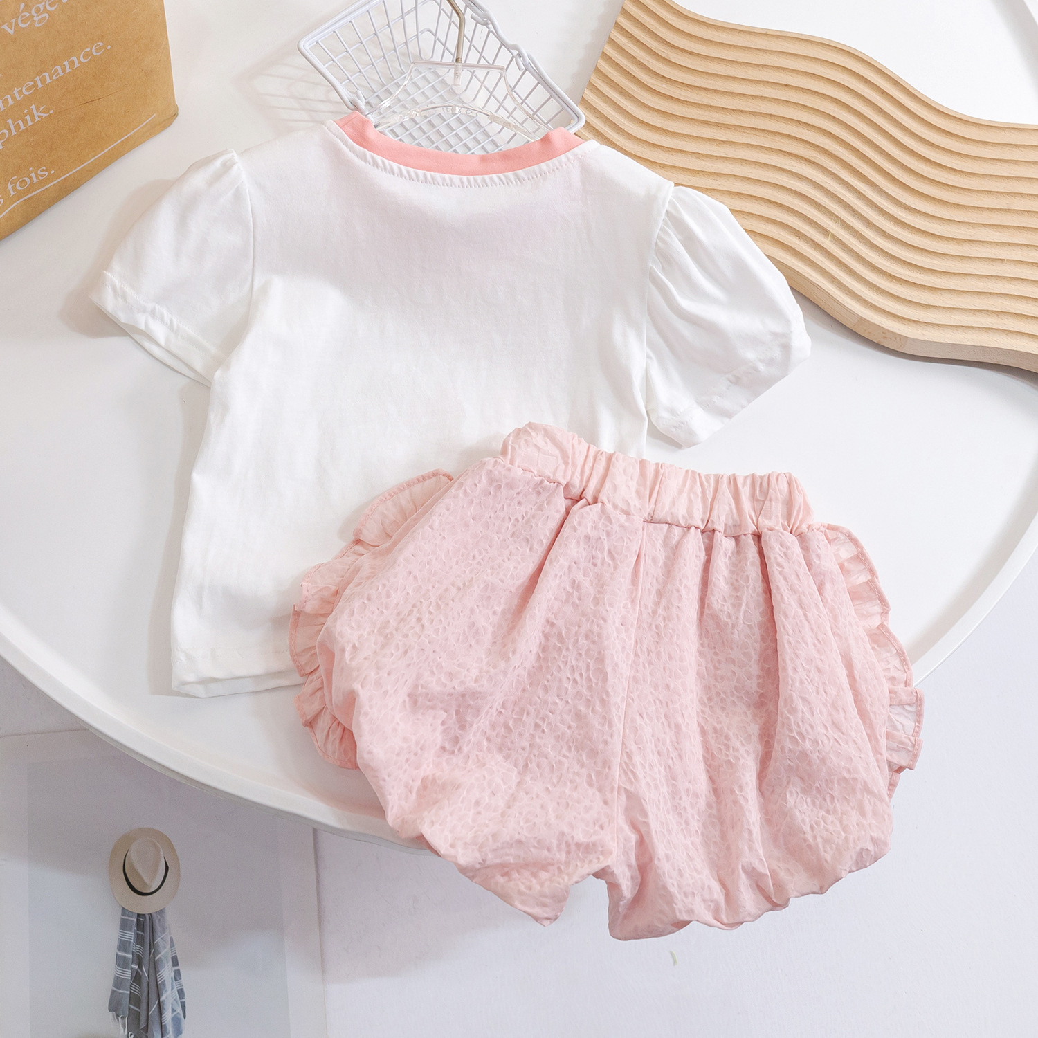 여아 한국 아동복 2025 새로운 라운드 넥 탑 반바지 투피스 세트 서양식 아동 여름 캐주얼 정장 유행스토어 가기
