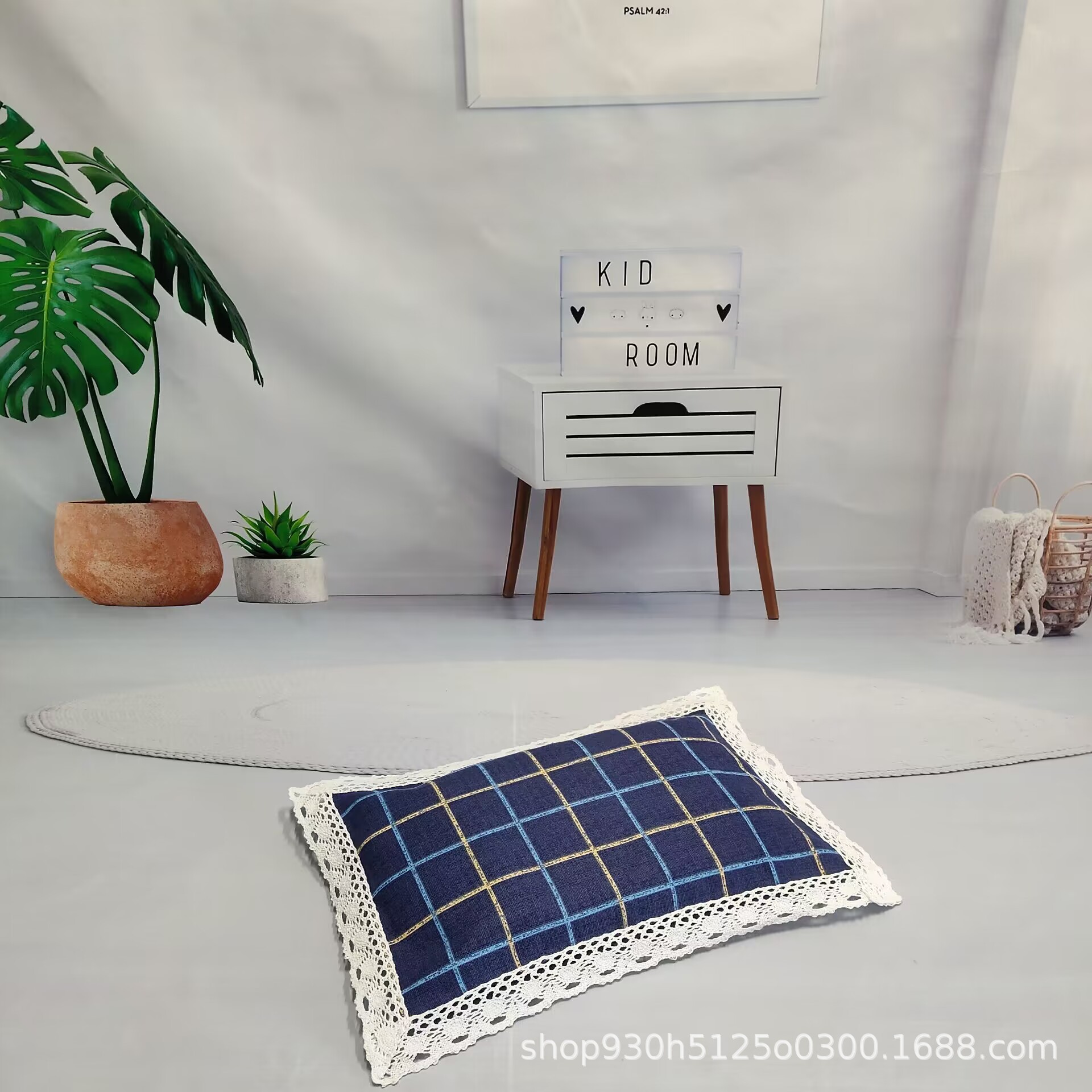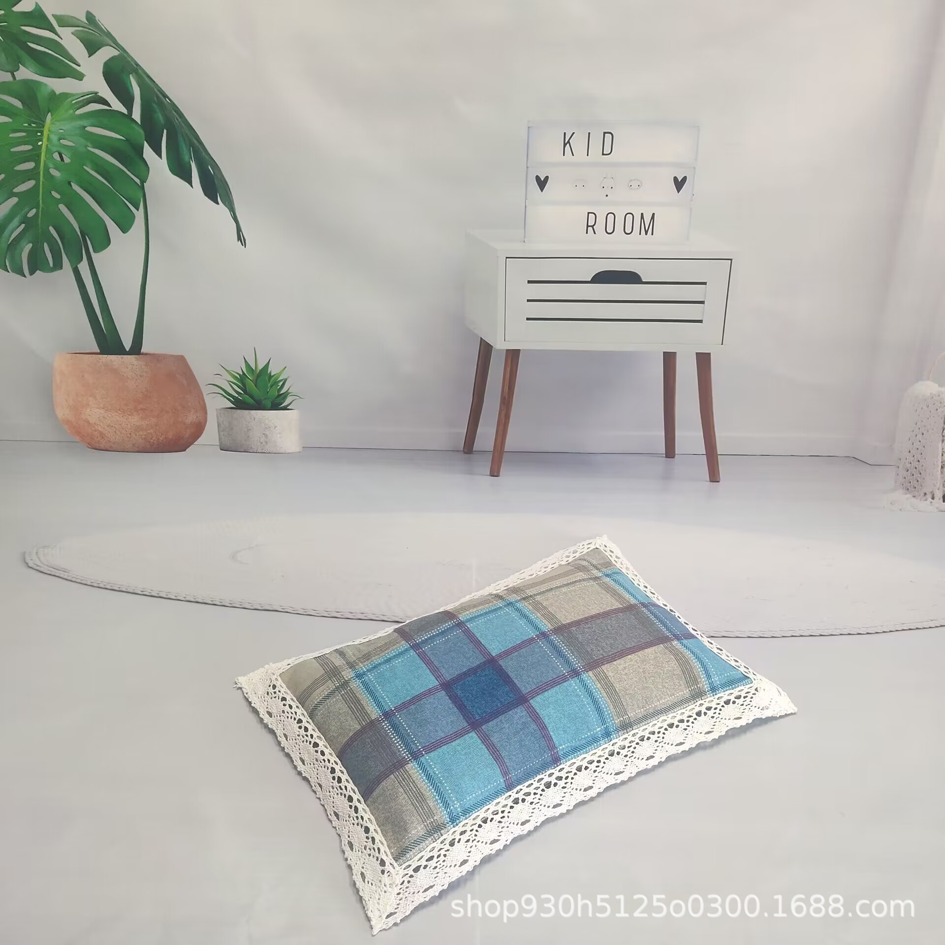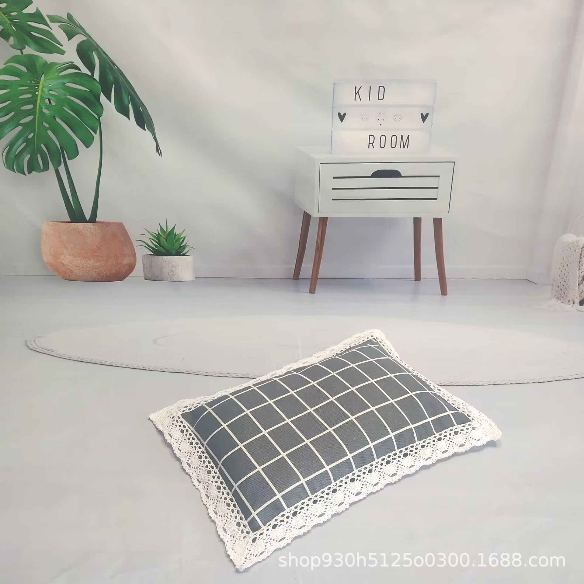 30/50cm l 오래 된 굵은 천 레이스 베갯잇 격자 무늬 어린이 만화 베개 광장