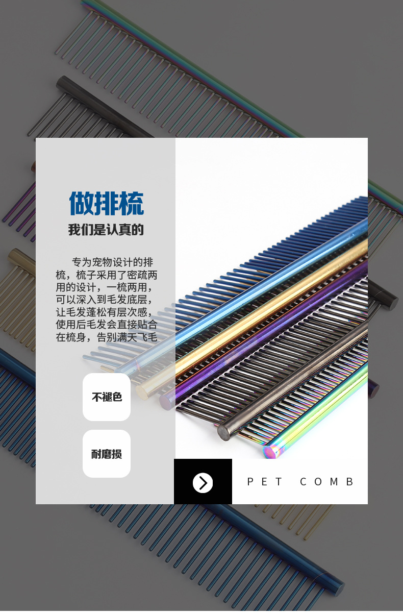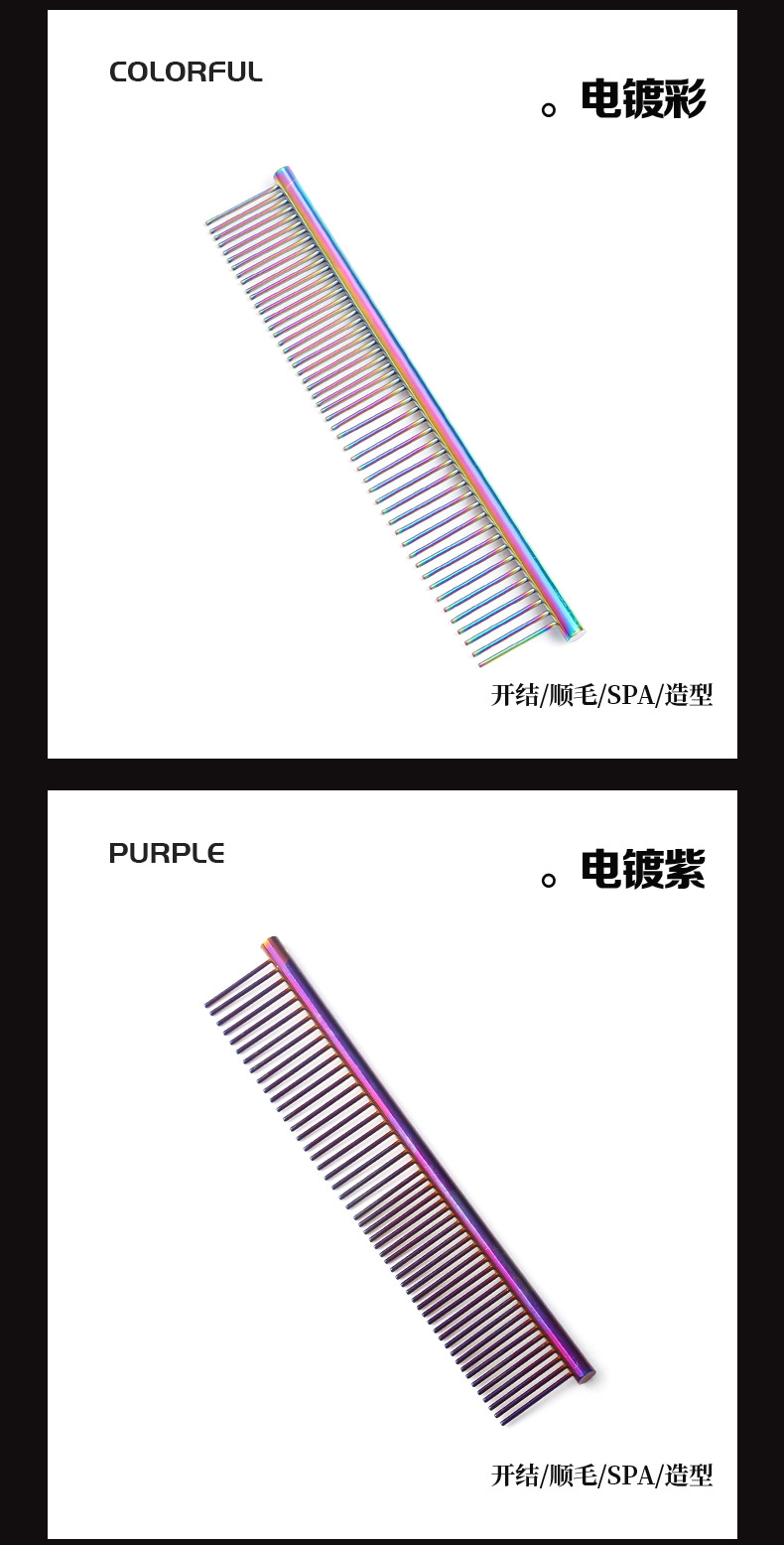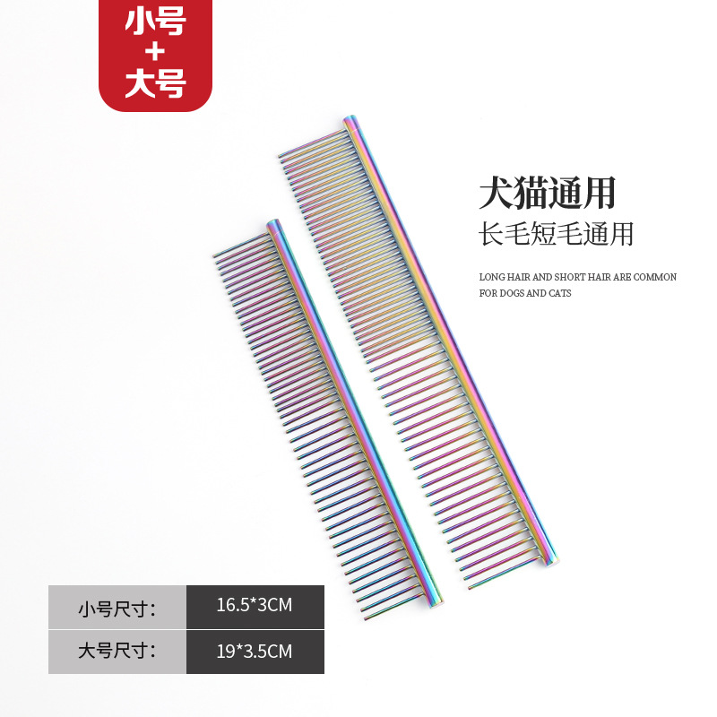 전문 애완 동물 빗 스테인레스 스틸 빗 직선 빗 개 고양이 미용 색상 강철 빗 대형 개 테디 오픈 매듭 빗