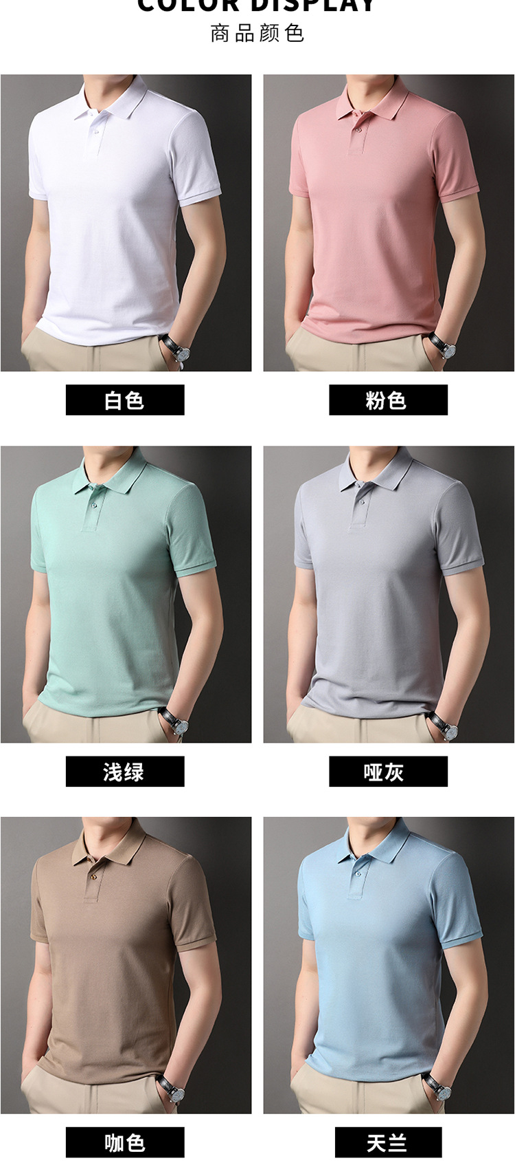 여름 신장 순면 반팔 티셔츠 남성용 단색 패션 캐주얼 라펠 폴로 셔츠 남성용 탑 티셔츠 남성용스토어 가기