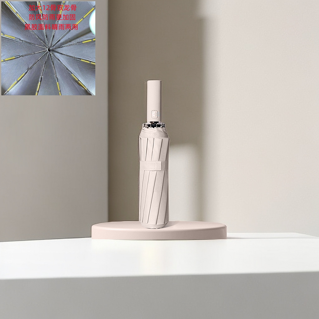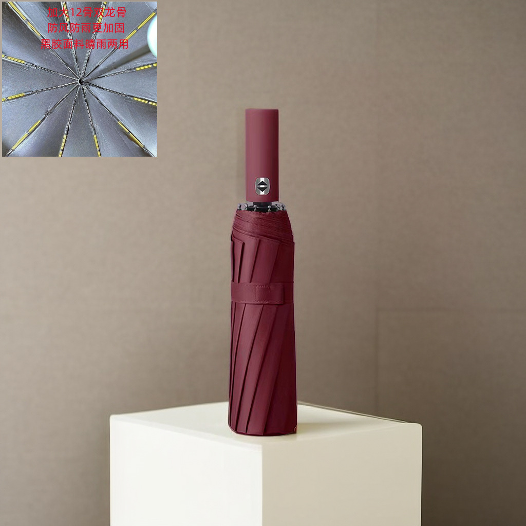 12 본 3 중 완전 자동 검정 접착제 비 이중 사용 자외선 차단 선물 광고 우산 인쇄 로고 제조업체 도매