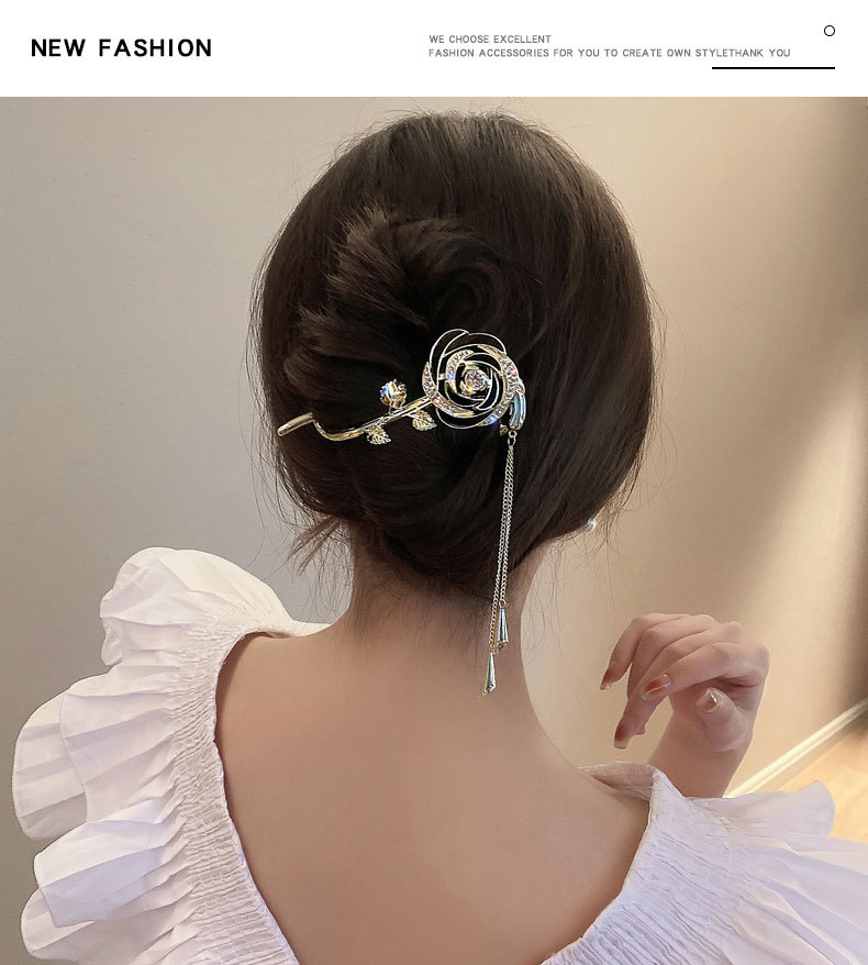 로즈 샤크 클립 우아한 우아한 잡아 클립 뒤로 머리 머리핀 고급 모자 인터넷 연예인 여성을위한 모든 매치 헤어 액세서리스토어 가기