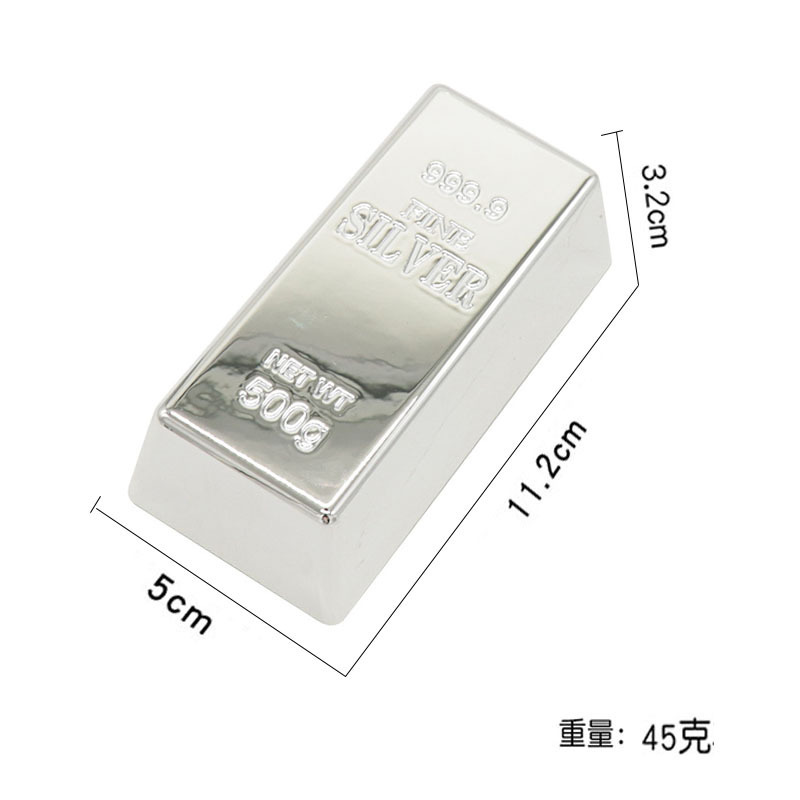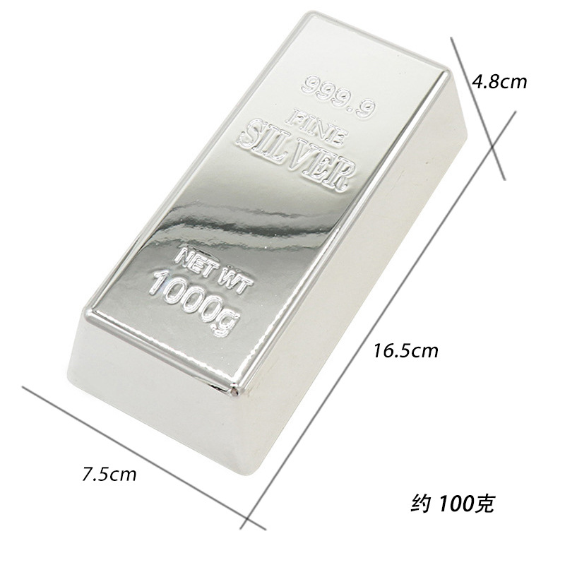 시뮬레이션 플라스틱 실버 벽돌 은색 장식품 전기 도금 중공 가짜 실버 스트립 도어 스톨 소품 장식 활동 완구스토어 가기