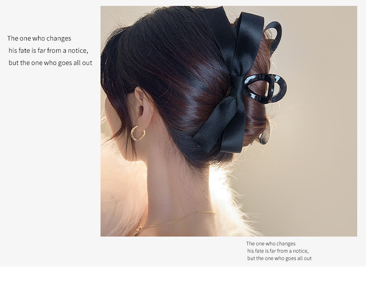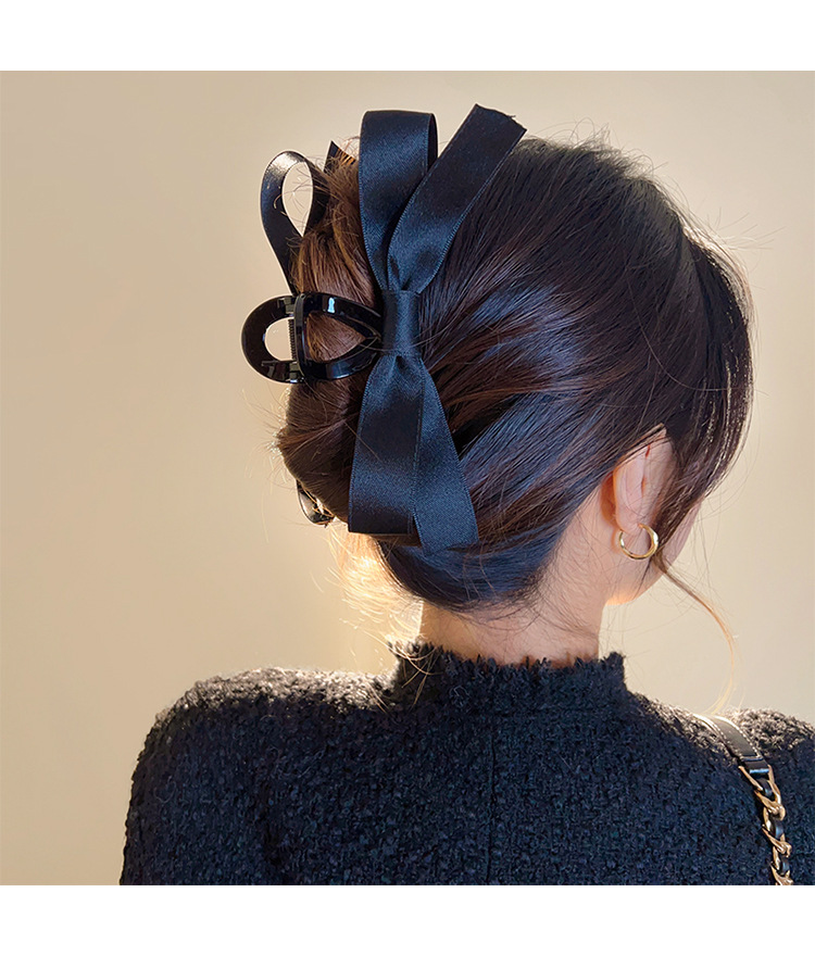 햅번 스타일 블랙 보우 잡아 클립 여성용 머리 뒤 머리핀 고급 상어 클립 대형 클립 모자 머리핀