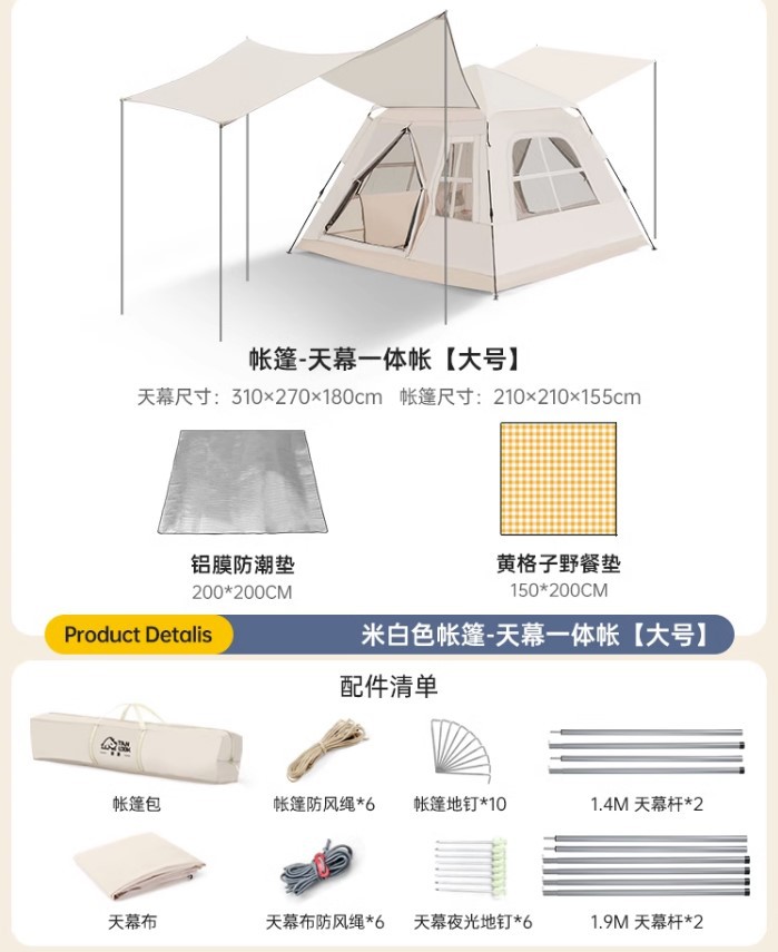 새로운 올인원 자동 텐트 스트리머 화이트 대형 텐트 텐트 야외 캠핑 천막 피크닉