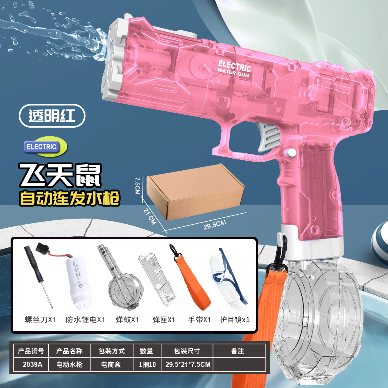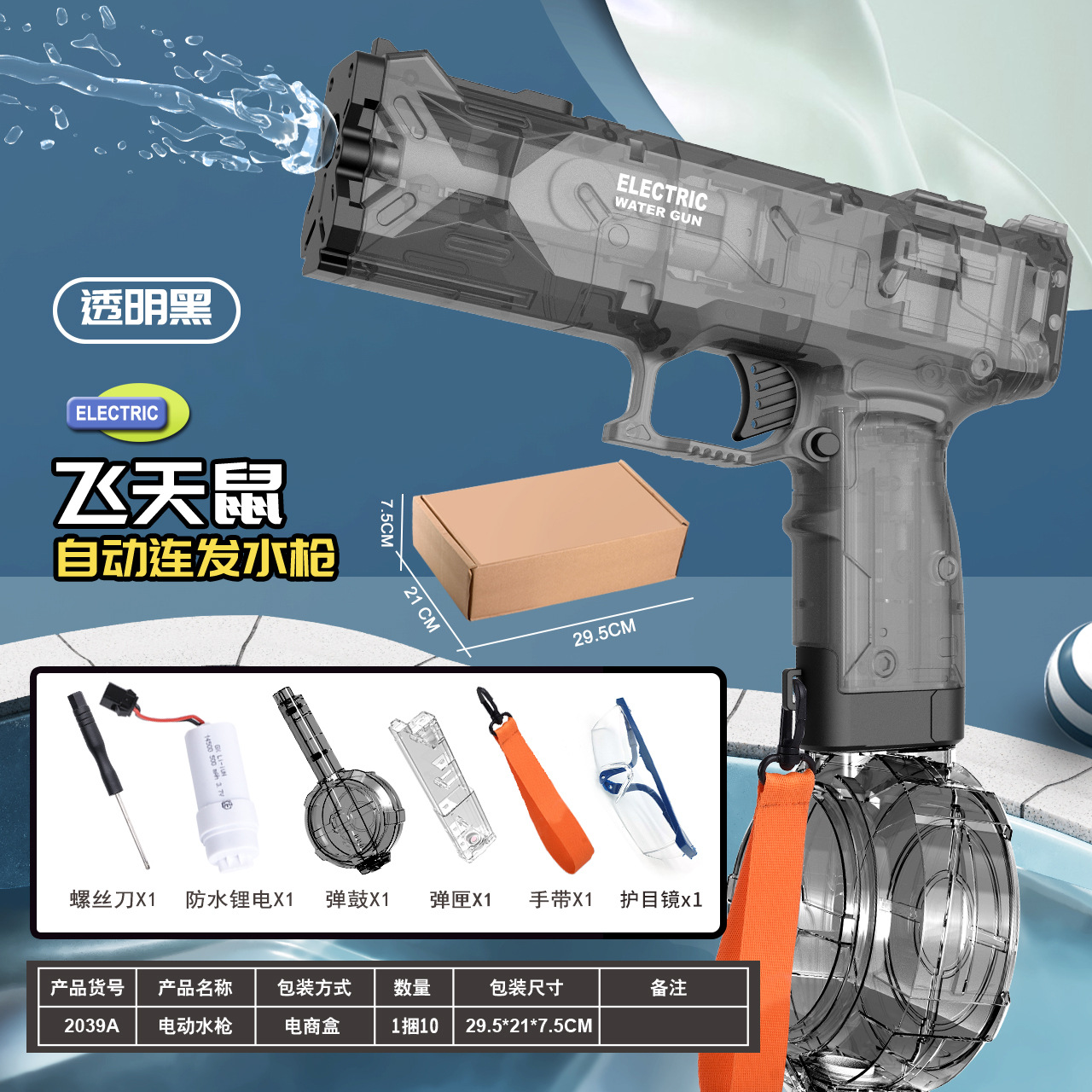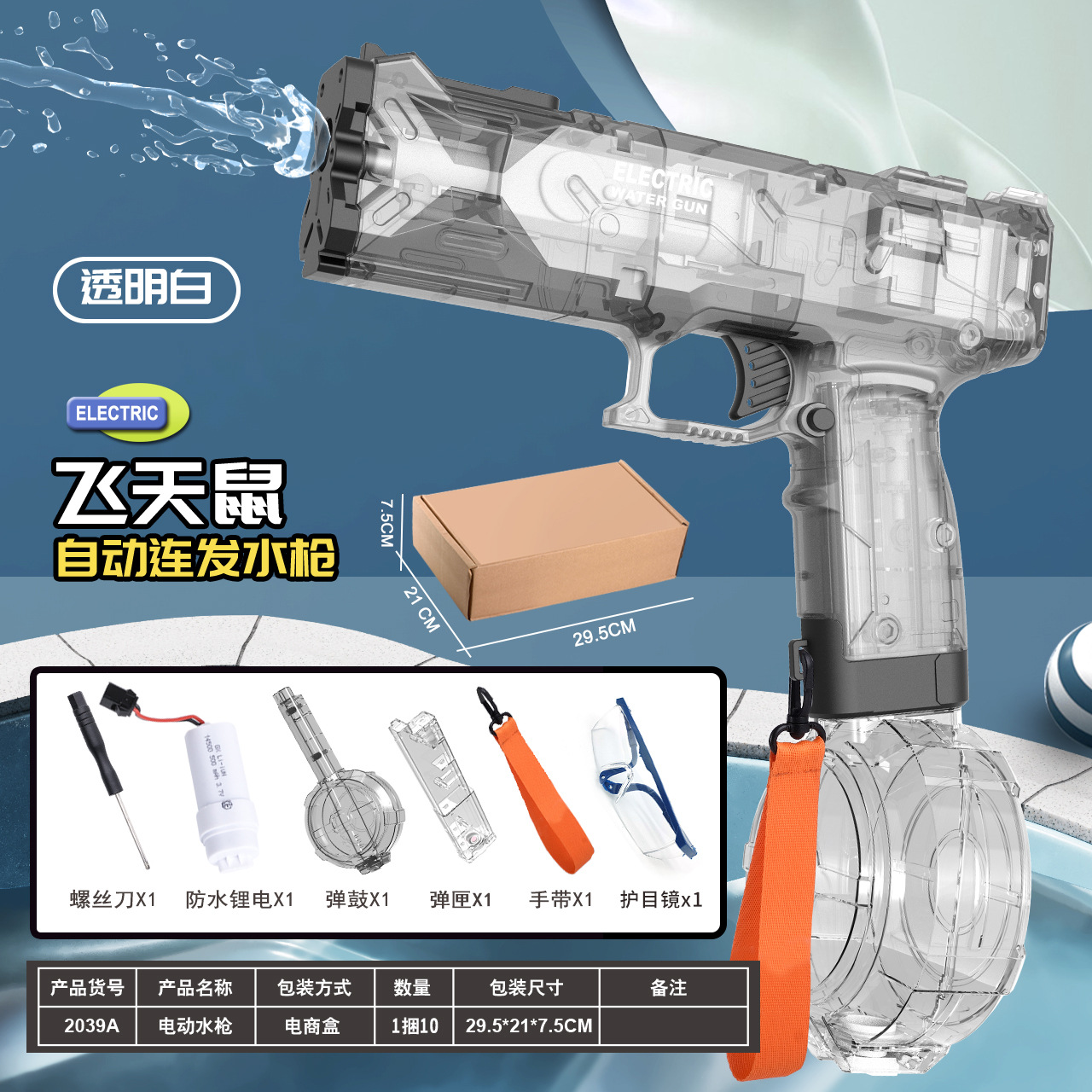 • [투명 드럼 버전] 비행 쥐 전기 물 총 (고글 포함)