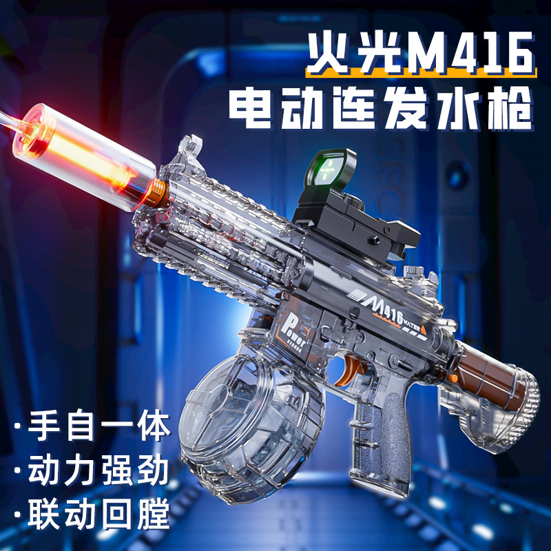 跨境火光M416电动水枪连发回膛手自一体高压水枪大容量自动水枪
