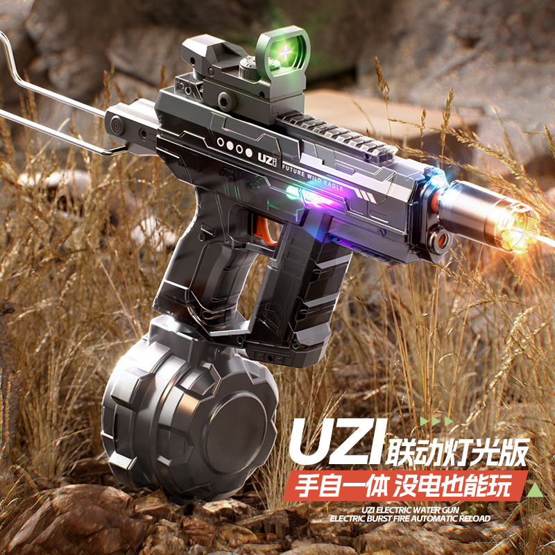 火光喷雾冰爆UJ电动水枪射程远高速连发uzi水枪玩具大容量呲水枪