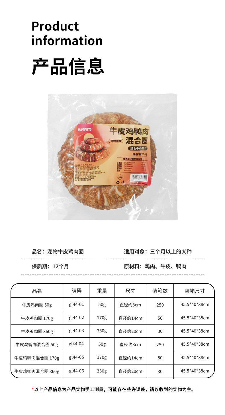 • 쇠고기 피부 닭고기와 오리 고기 혼합 링 170g