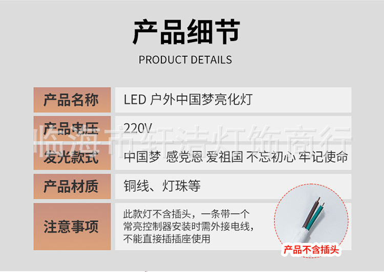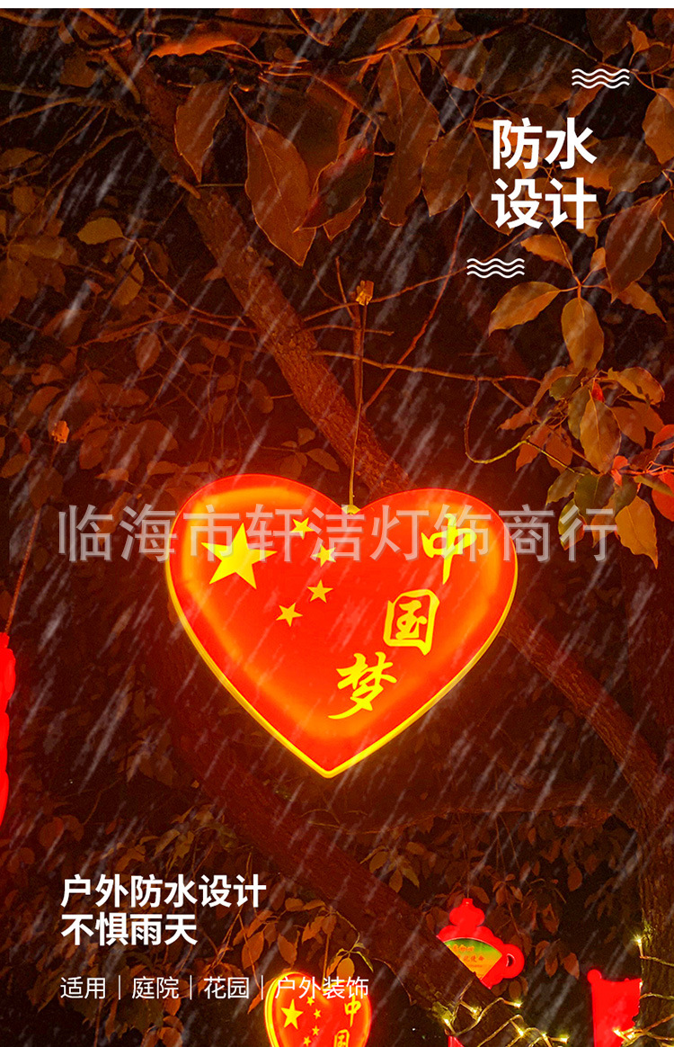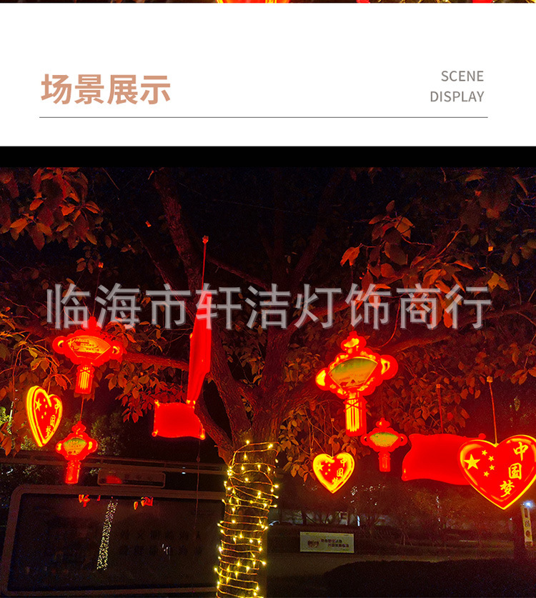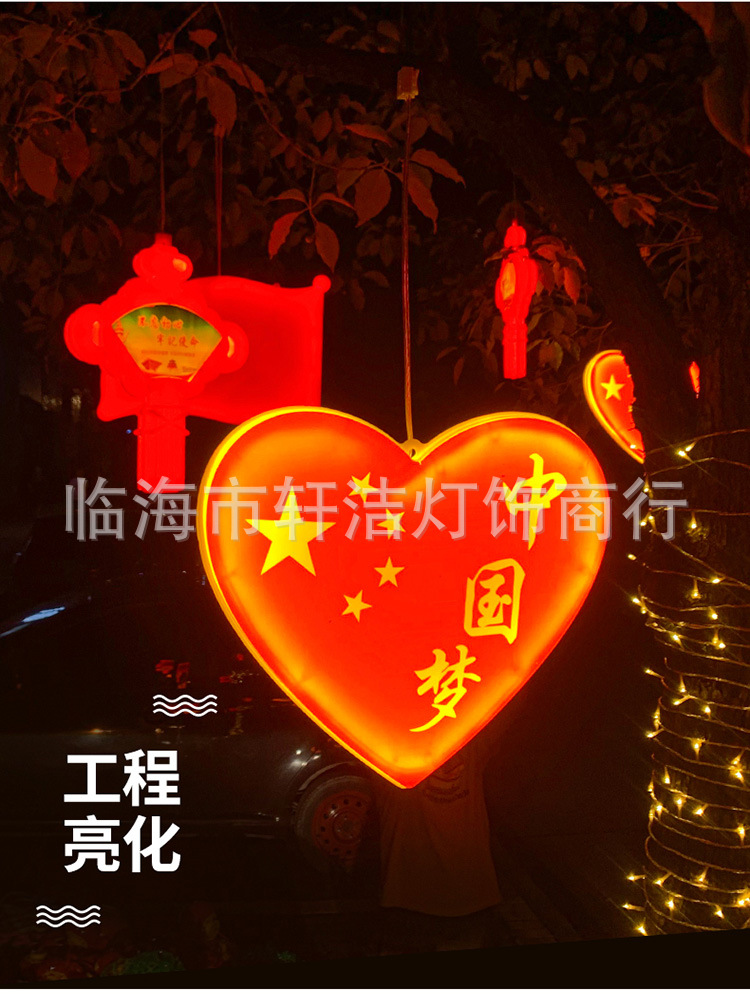 LED 빛나는 중국 꿈 모양 램프 야외 방수 건설 및 군대 국경일 휴일 교수형 나무 장식 램프