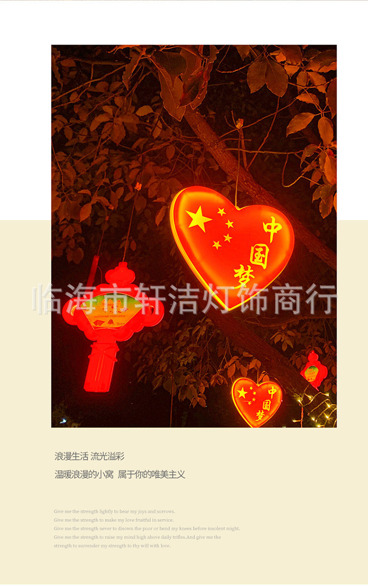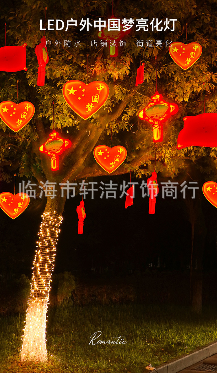 LED 빛나는 중국 꿈 모양 램프 야외 방수 건설 및 군대 국경일 휴일 교수형 나무 장식 램프스토어 가기