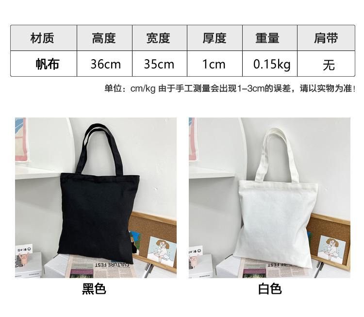 캔버스 가방 인쇄 가능 로고 패턴 휴대용 어깨 천 가방 빈 손으로 그린 도매 DIY 낙서 캔버스 가방스토어 가기