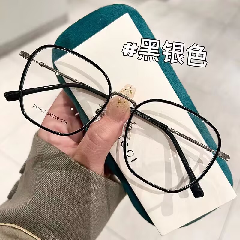 대학생용 초경량 안경, 한국식 일반 대형 프레임, 청색광 방지, 휴대폰 방사선 방지 렌즈, 근시 정도 표시 및 미백 기능 포함