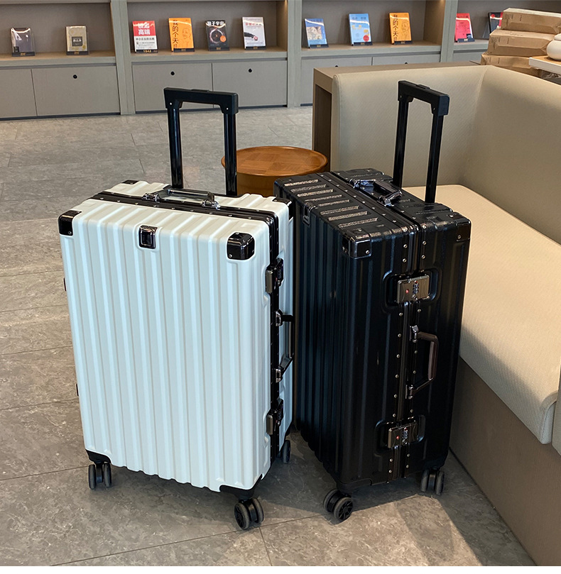 여성용 수하물 가방 2025 새로운 자동 범용 휠 강력하고 내구성이 뛰어난 대용량 알루미늄 프레임 남성용 비밀번호 트롤리 가방스토어 가기