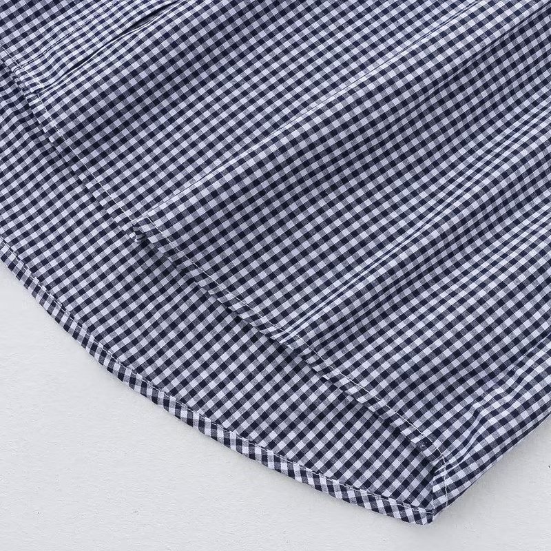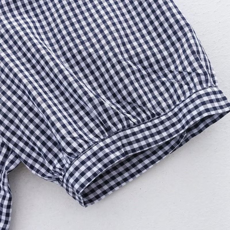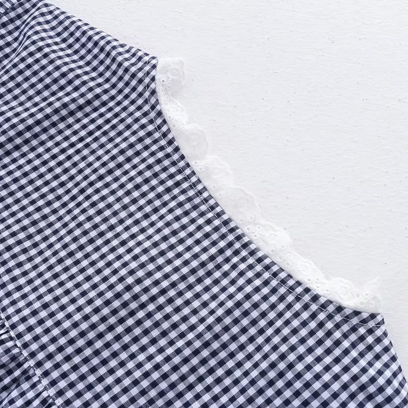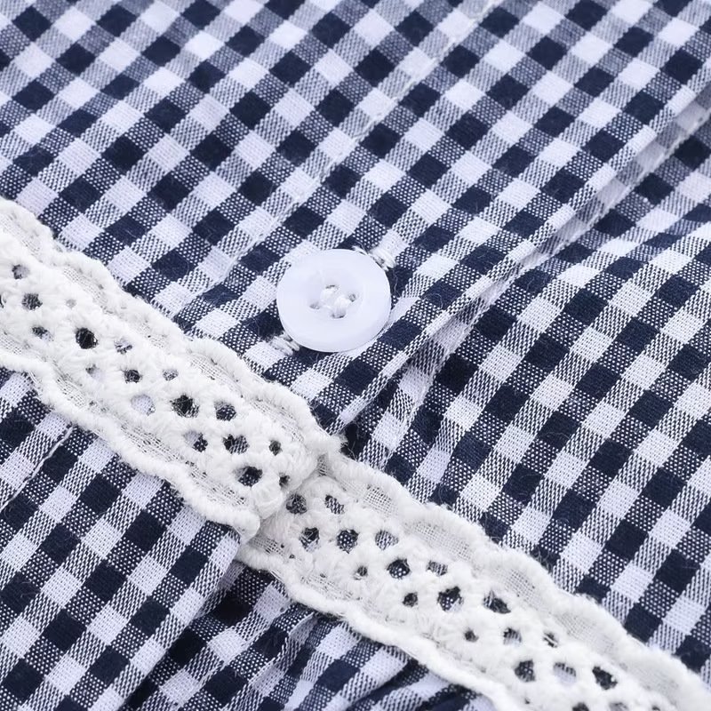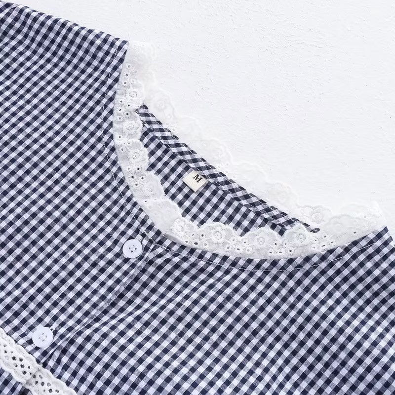 2025 여름 신상 레이스 라운드넥 가디건 여성 체크무늬 반팔 셔츠
