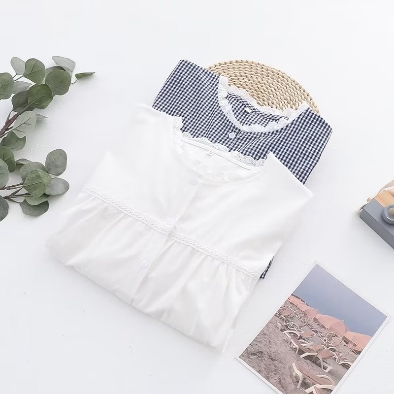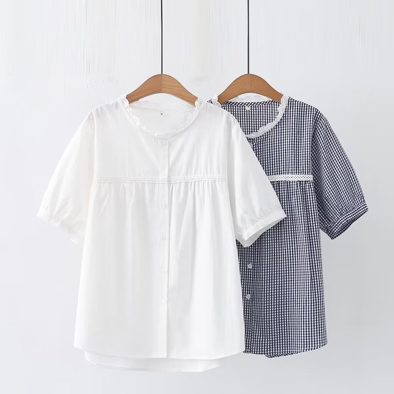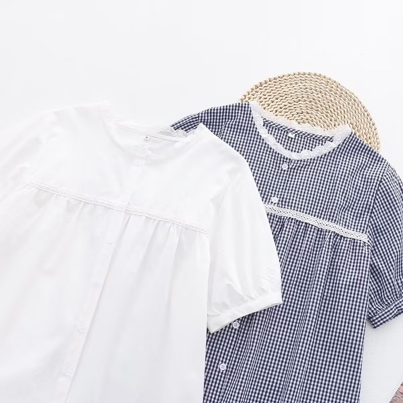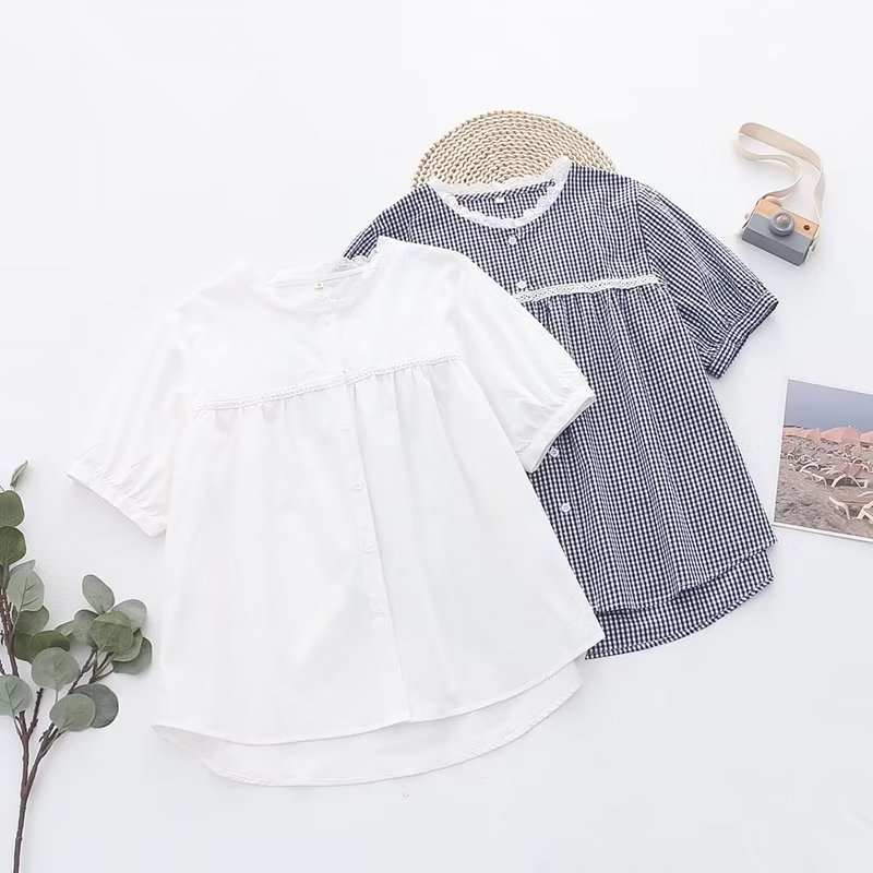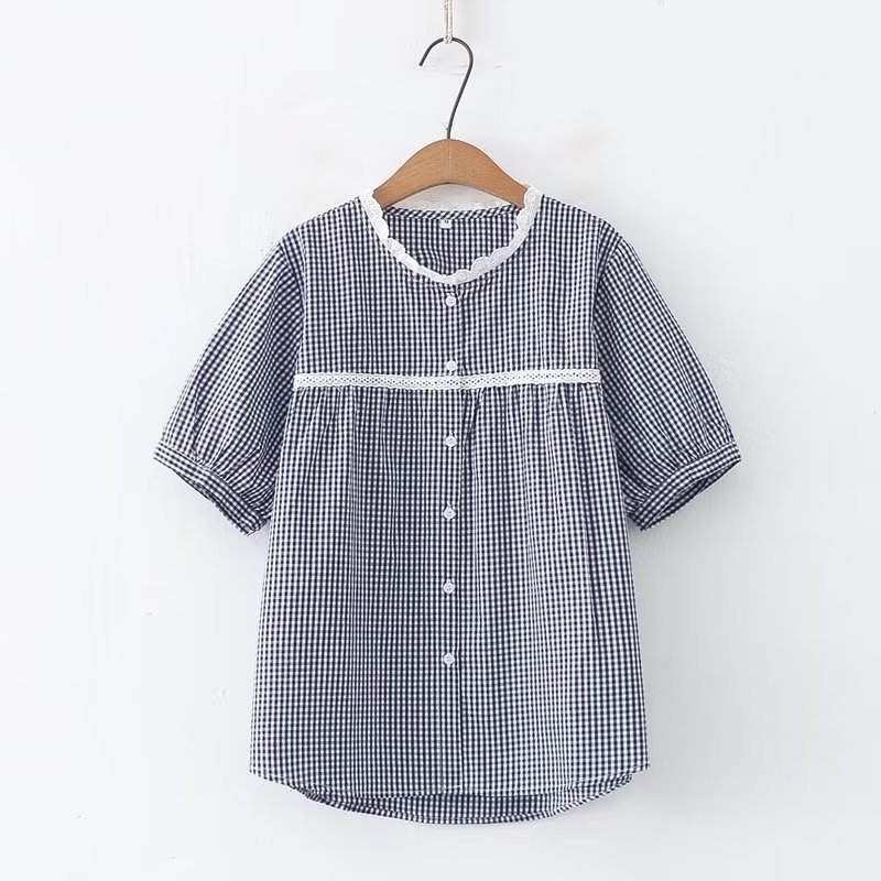 2025 여름 신상 레이스 라운드넥 가디건 여성 체크무늬 반팔 셔츠스토어 가기