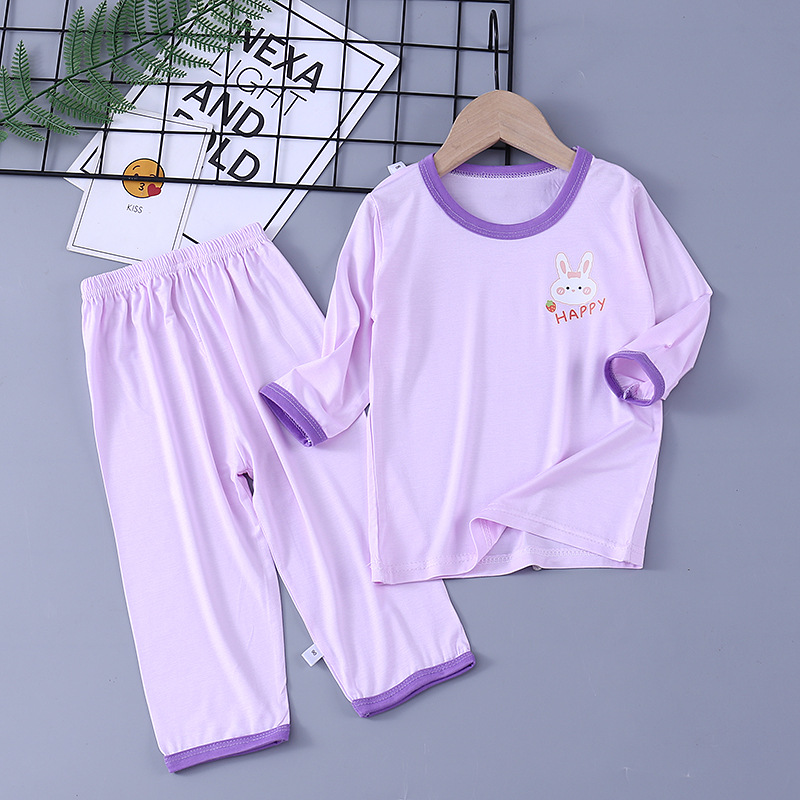 어린이 가정 의류 여름 에어컨 옷 소년과 소녀 아기 얇은 잠옷 어린이 7 점 소매 2 피스 세트