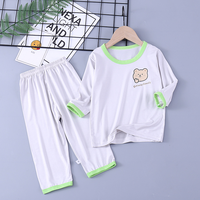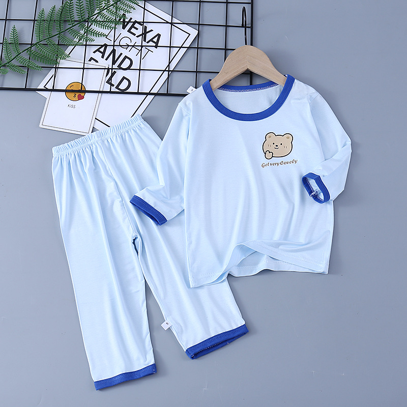어린이 가정 의류 여름 에어컨 옷 소년과 소녀 아기 얇은 잠옷 어린이 7 점 소매 2 피스 세트스토어 가기
