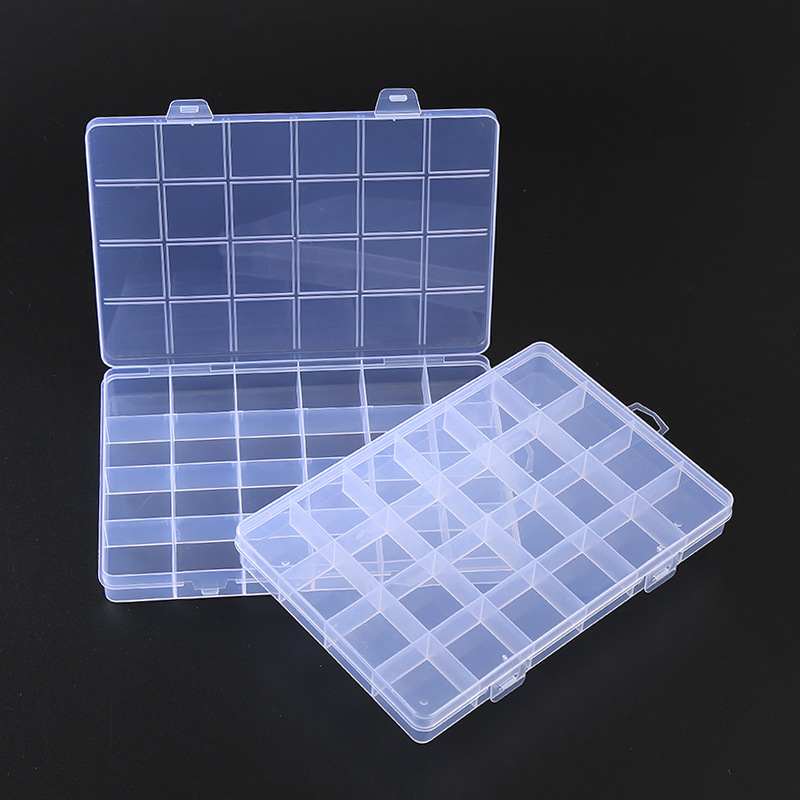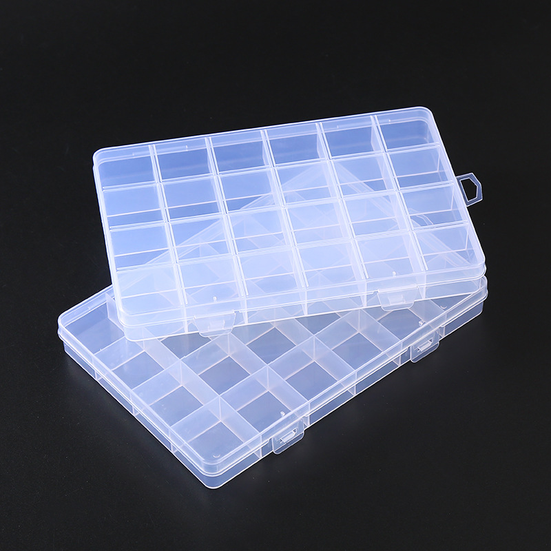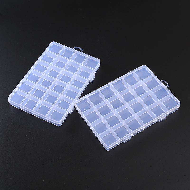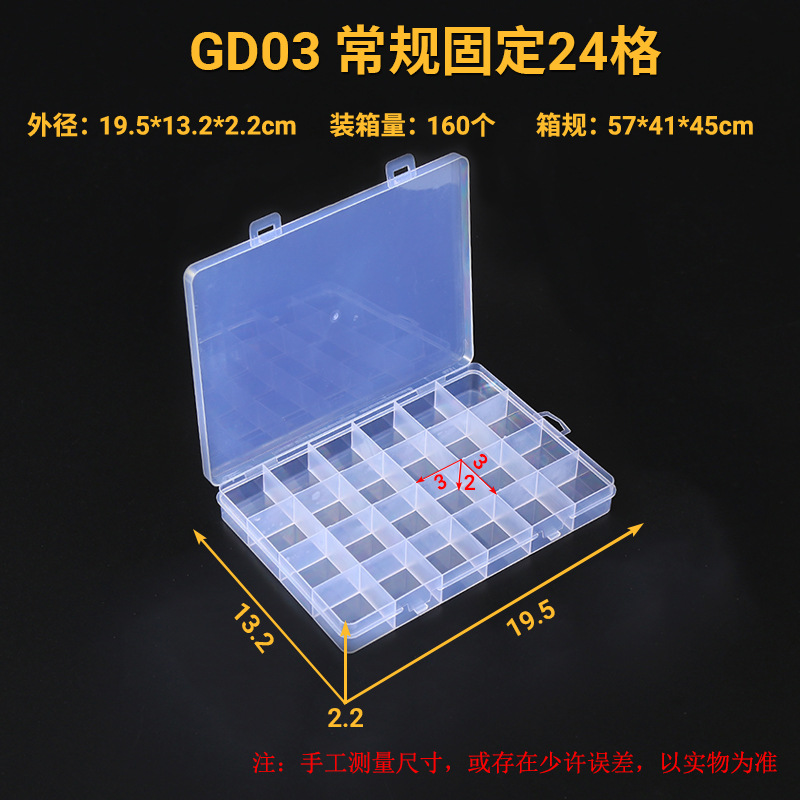 뚜껑이있는 엄격한 선택 대용량 GD03GD26 고정 24 그리드 투명 플라스틱 보석 상자 멀티 그리드 보석 상자 보관 상자