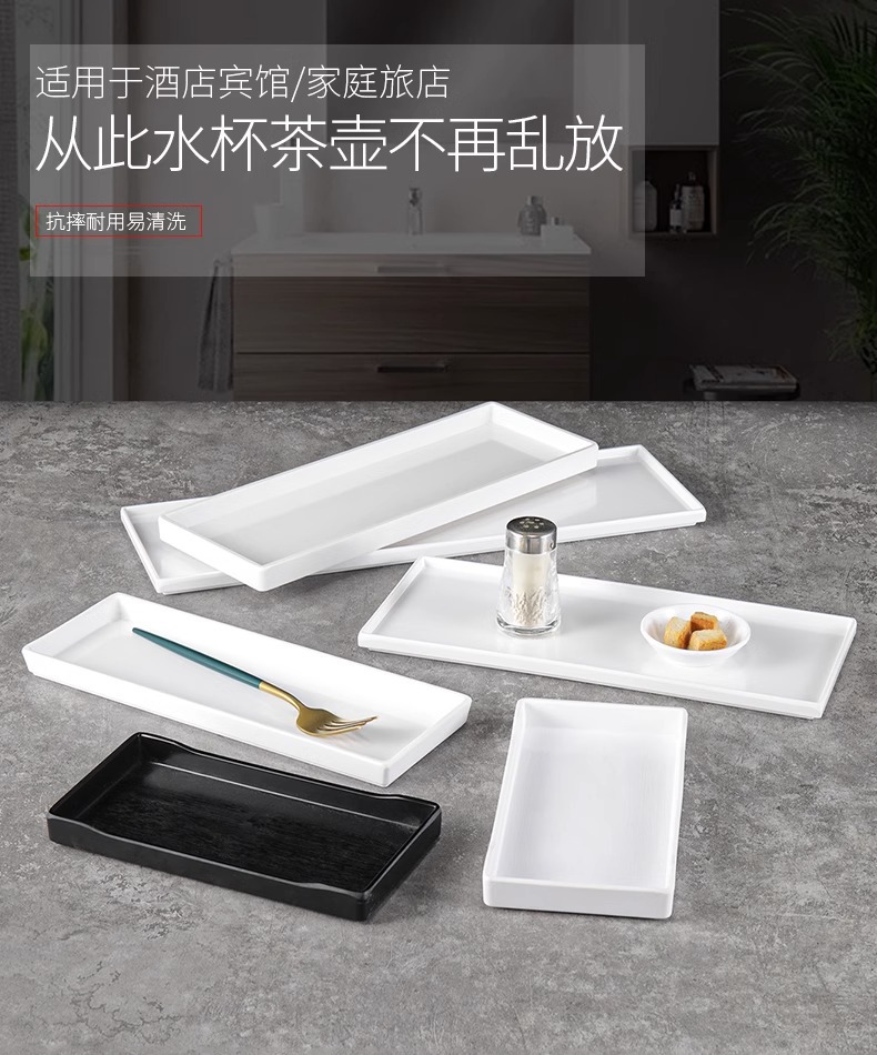 플라스틱 직사각형 티 컵 트레이 멜라민 호텔 객실 물 컵 트레이 좁은 긴 트레이 보관 긴 트레이스토어 가기