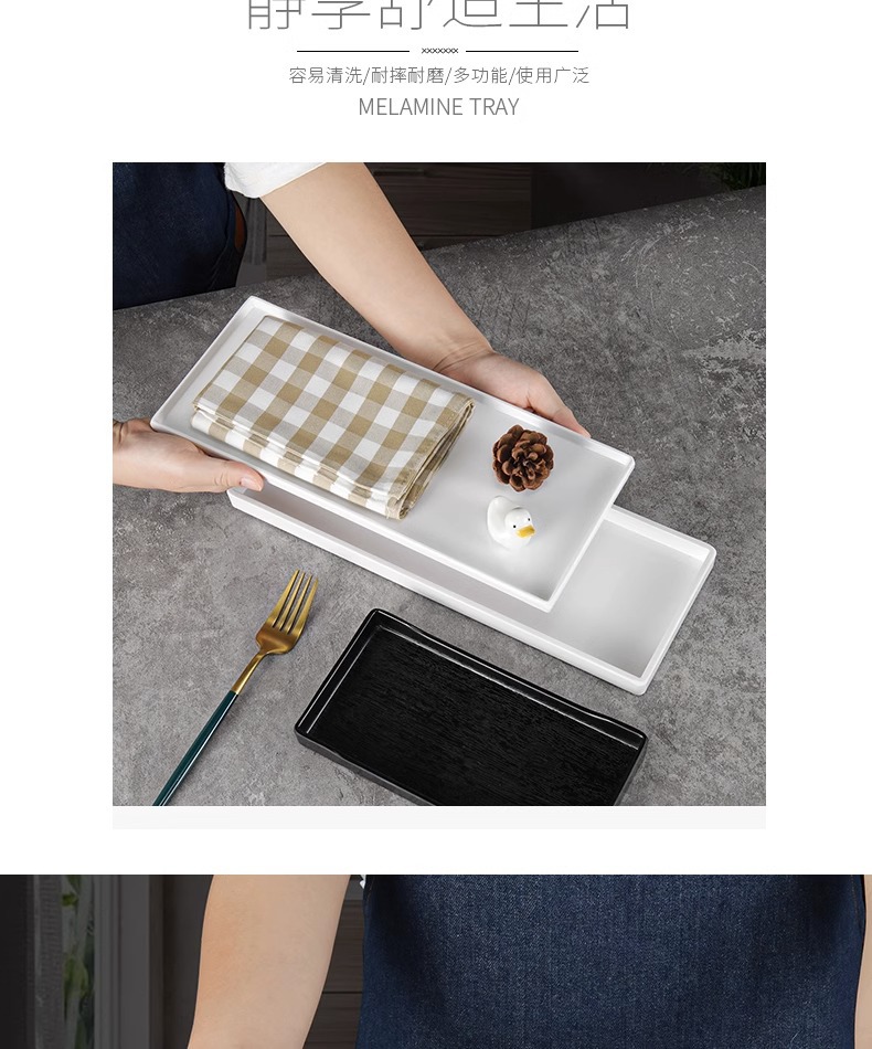 플라스틱 직사각형 티 컵 트레이 멜라민 호텔 객실 물 컵 트레이 좁은 긴 트레이 보관 긴 트레이
