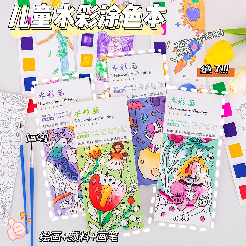 어린이 수채화 색칠하기 책 낙서 그림 색칠 유치원은 안료 구 아슈 그림으로이 창조적 인 선물을 제공합니다스토어 가기