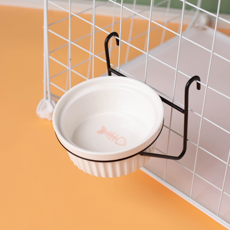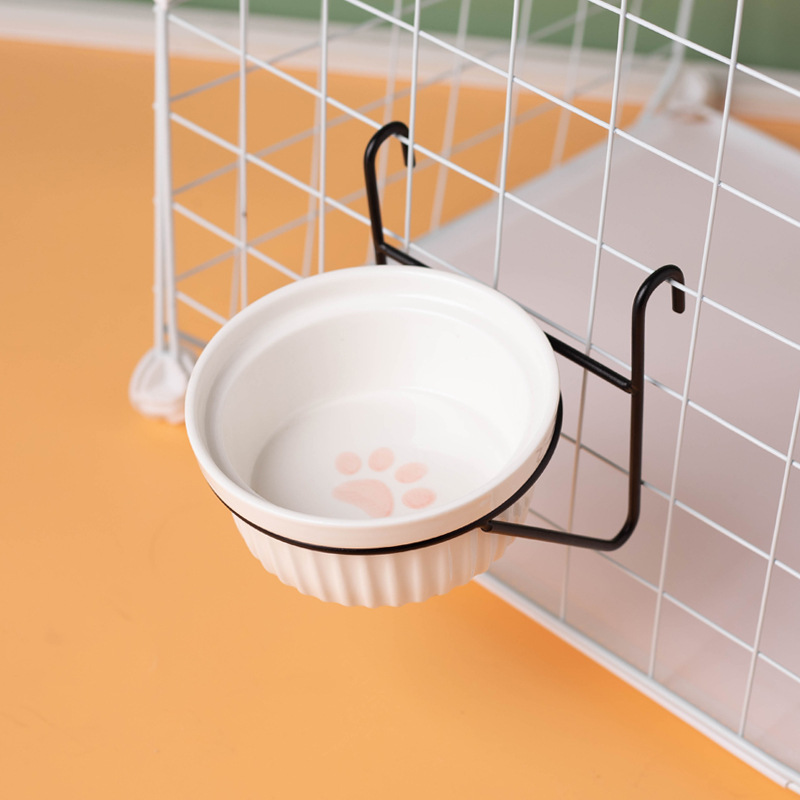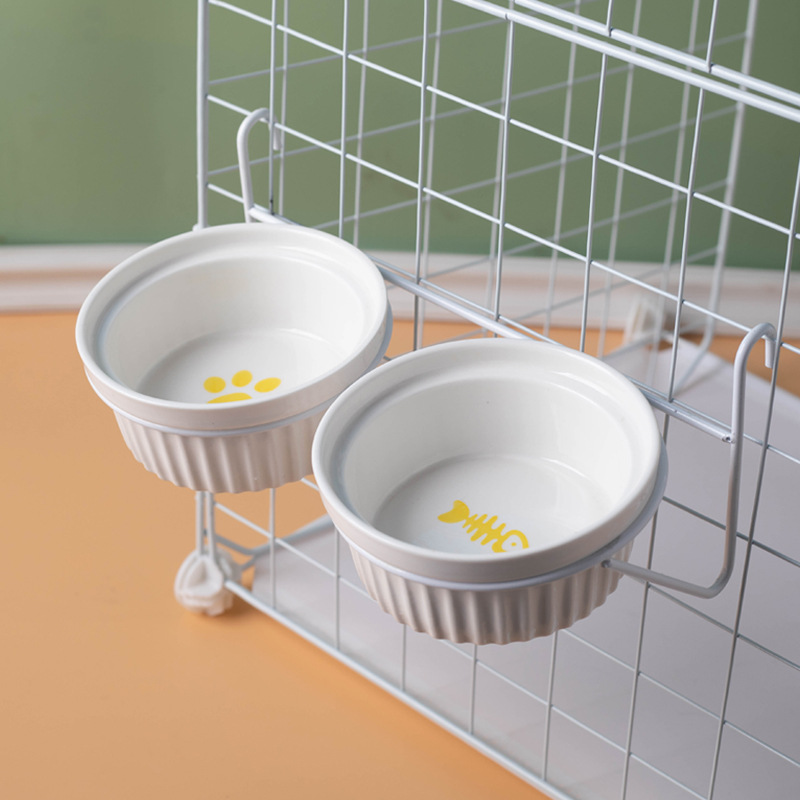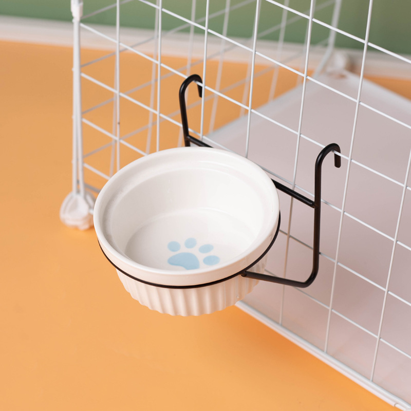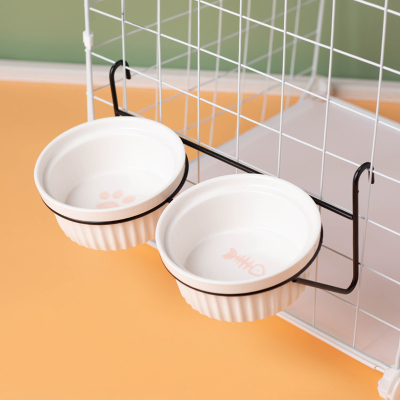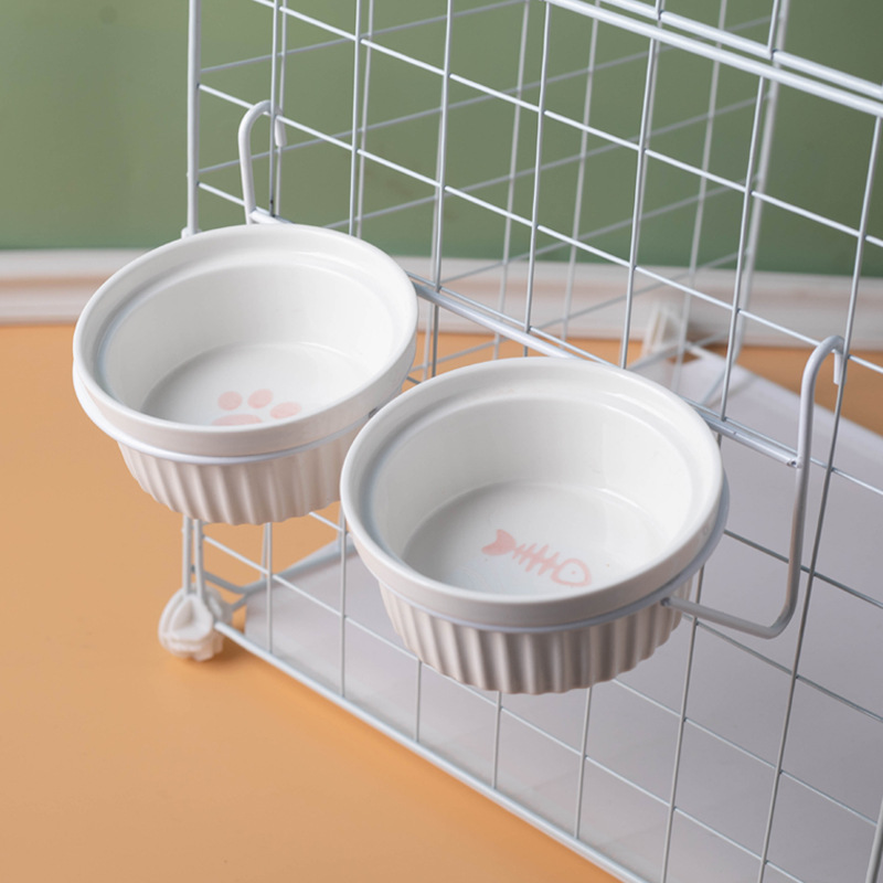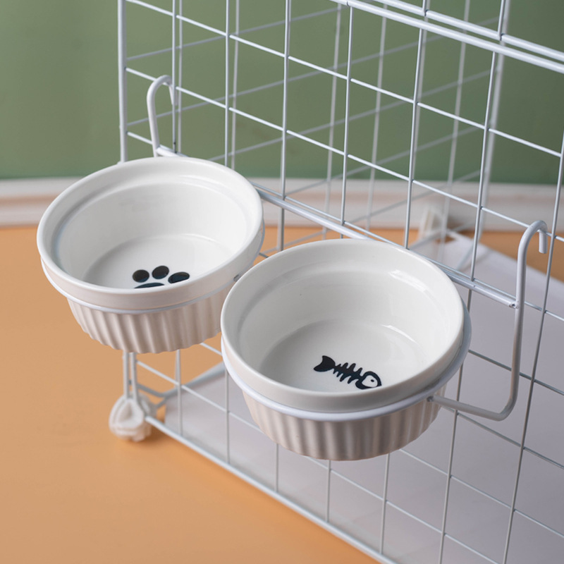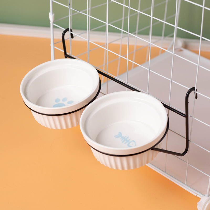 세라믹 고양이 그릇 전복 방지 고양이 음식 분지 교수형 마시는 그릇 고정 개 분지 교수형 케이지 애완 동물 그릇 강아지 새끼 고양이 그릇