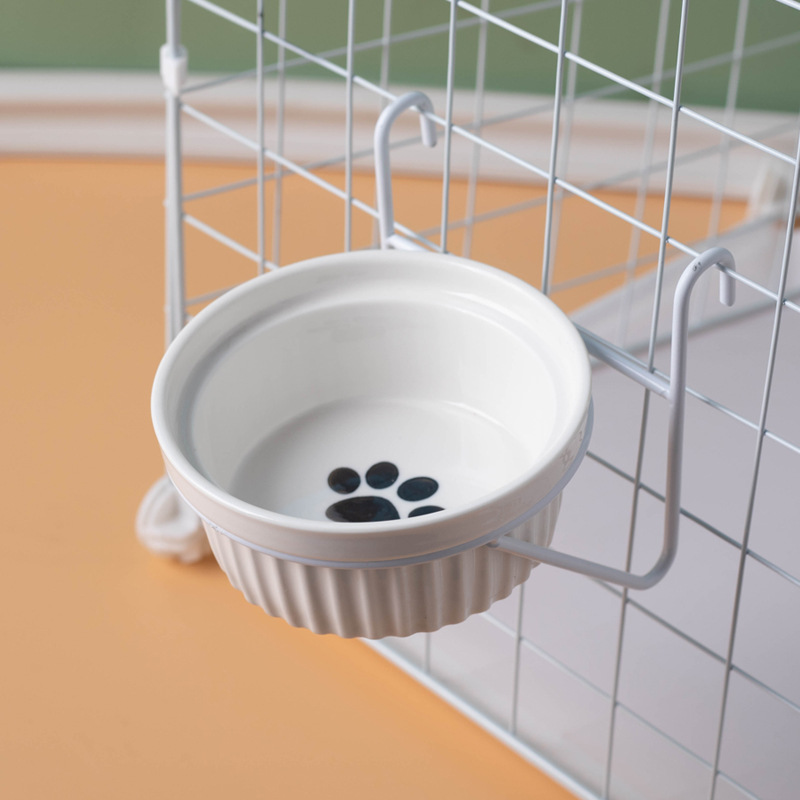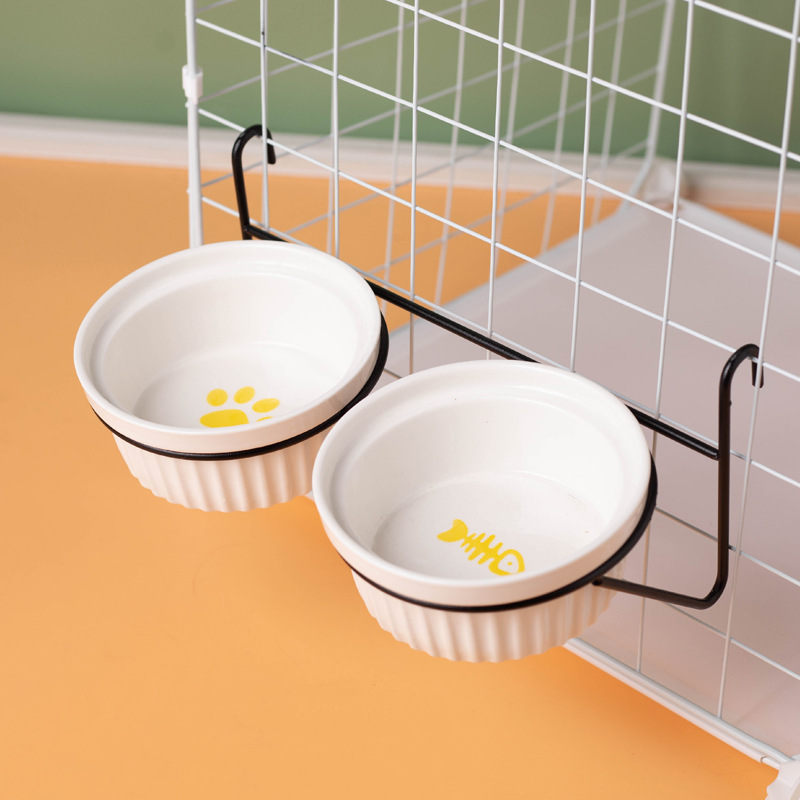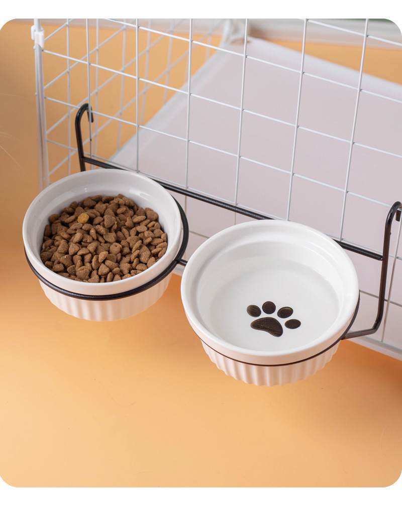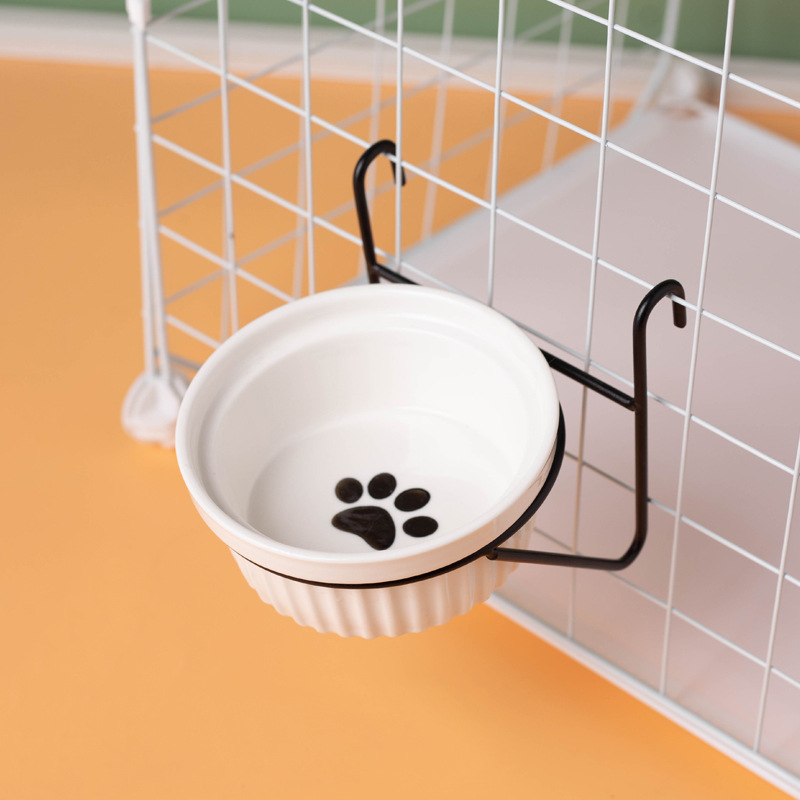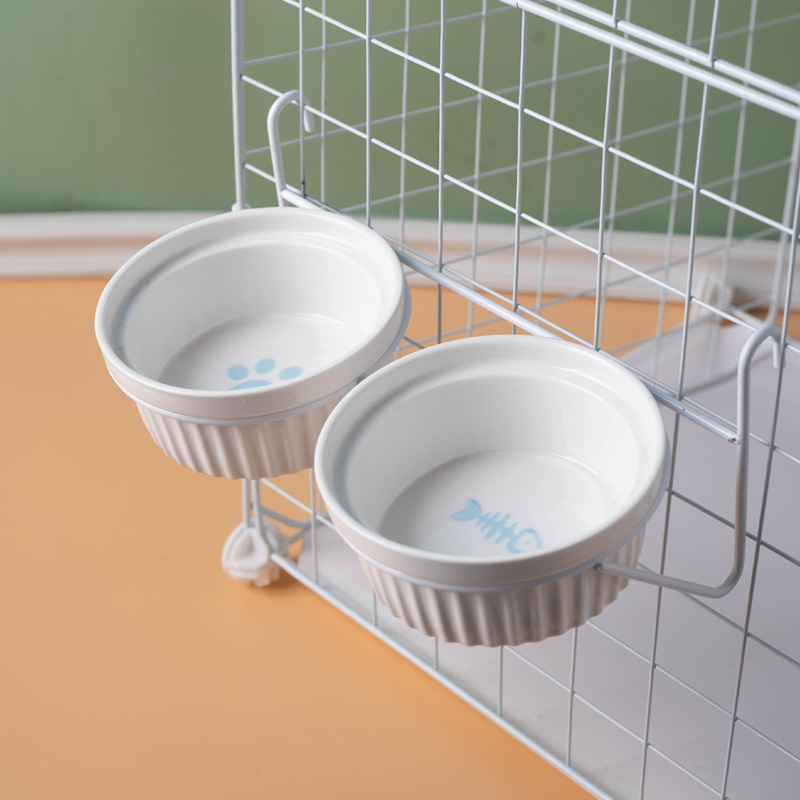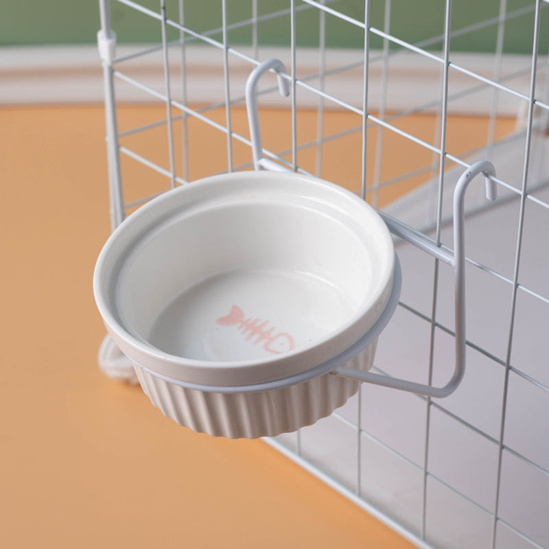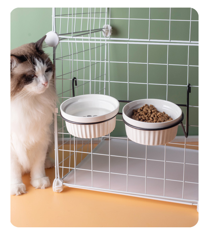 세라믹 고양이 그릇 전복 방지 고양이 음식 분지 교수형 마시는 그릇 고정 개 분지 교수형 케이지 애완 동물 그릇 강아지 새끼 고양이 그릇