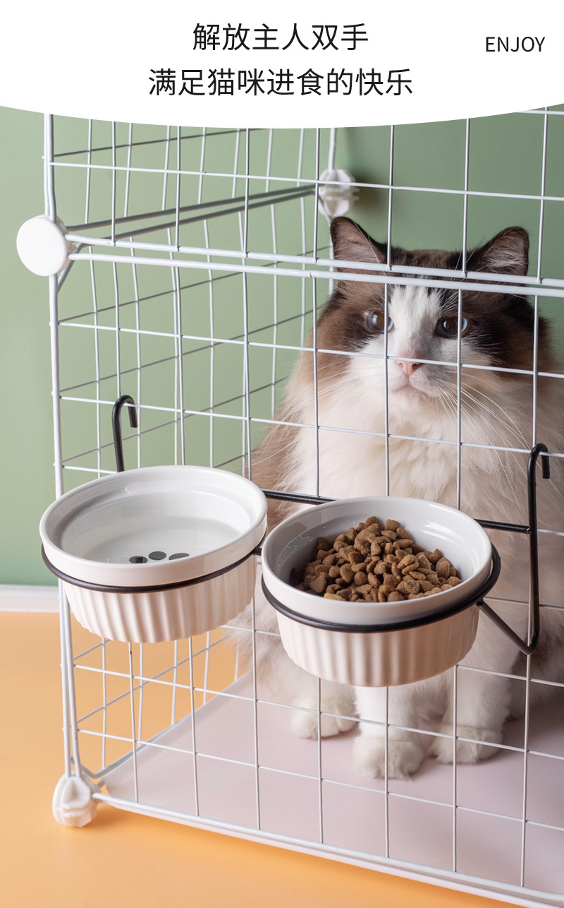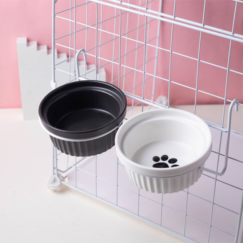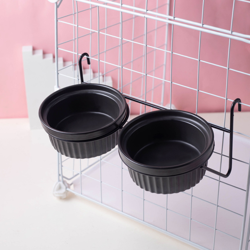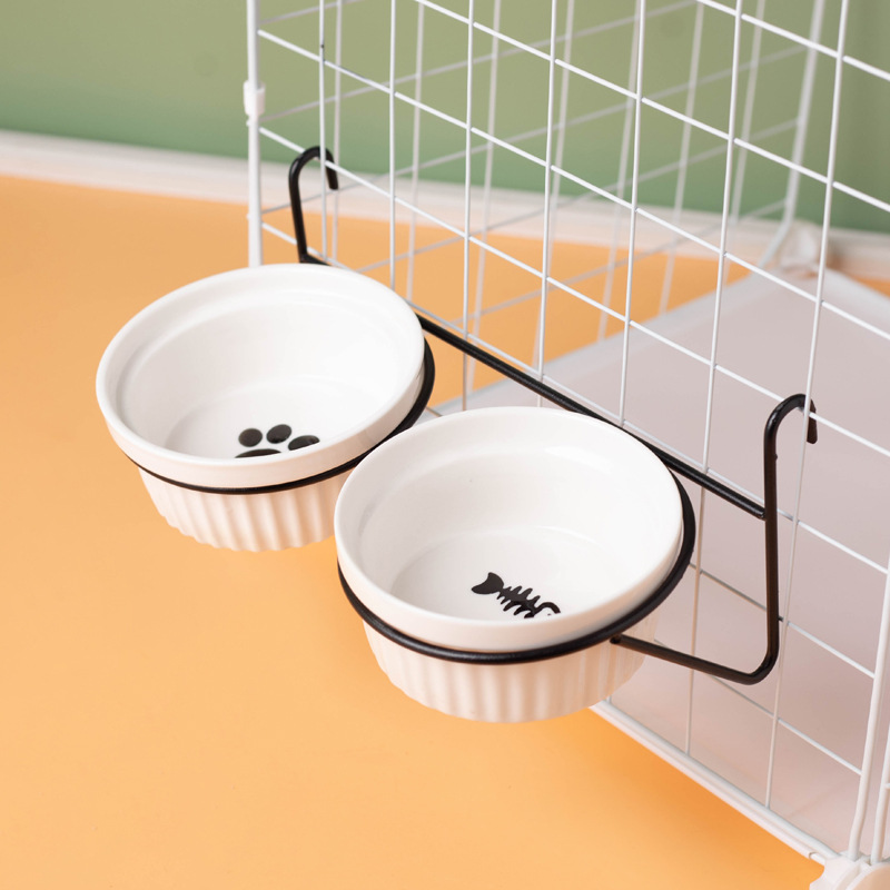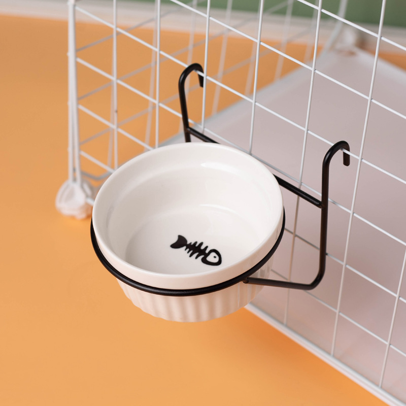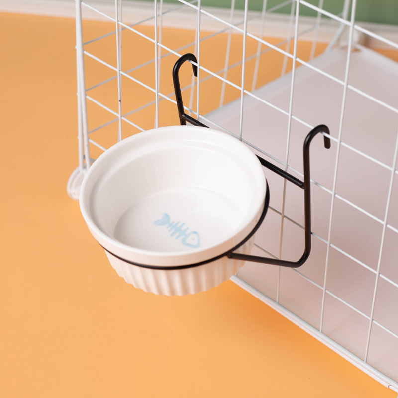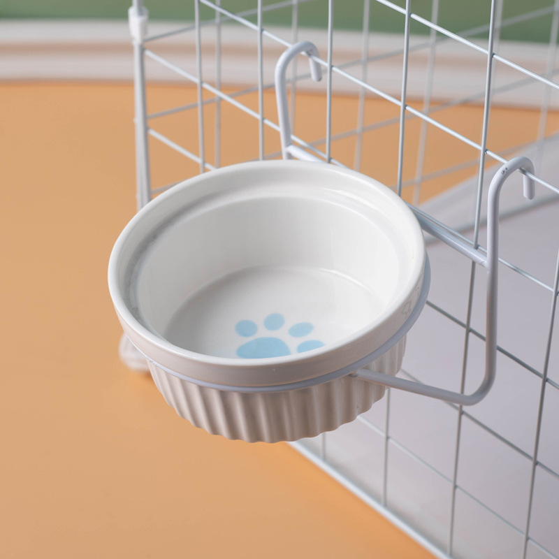 세라믹 고양이 그릇 전복 방지 고양이 음식 분지 교수형 마시는 그릇 고정 개 분지 교수형 케이지 애완 동물 그릇 강아지 새끼 고양이 그릇