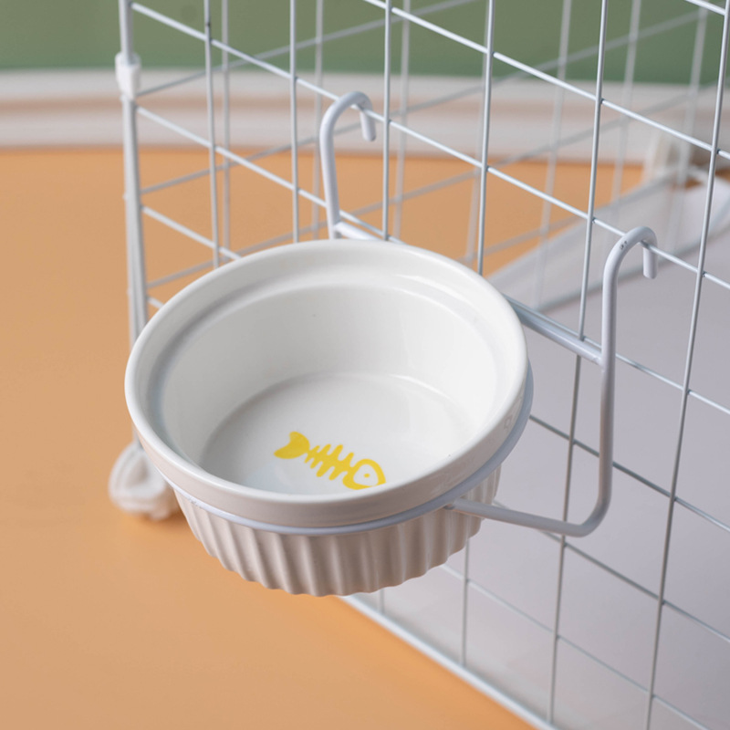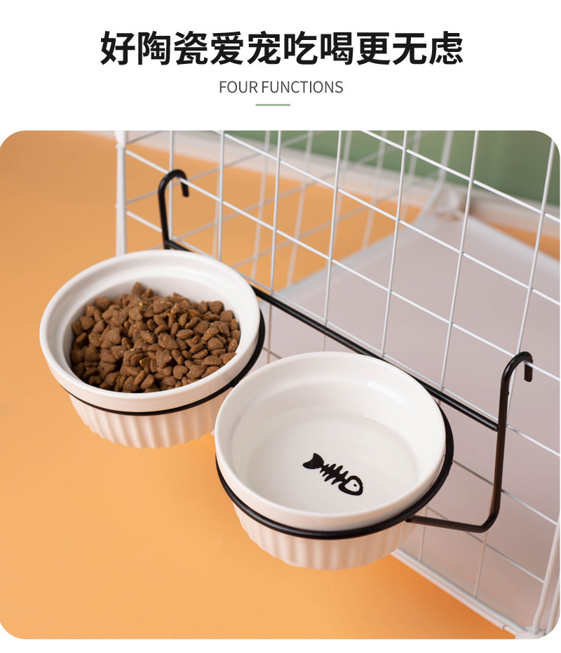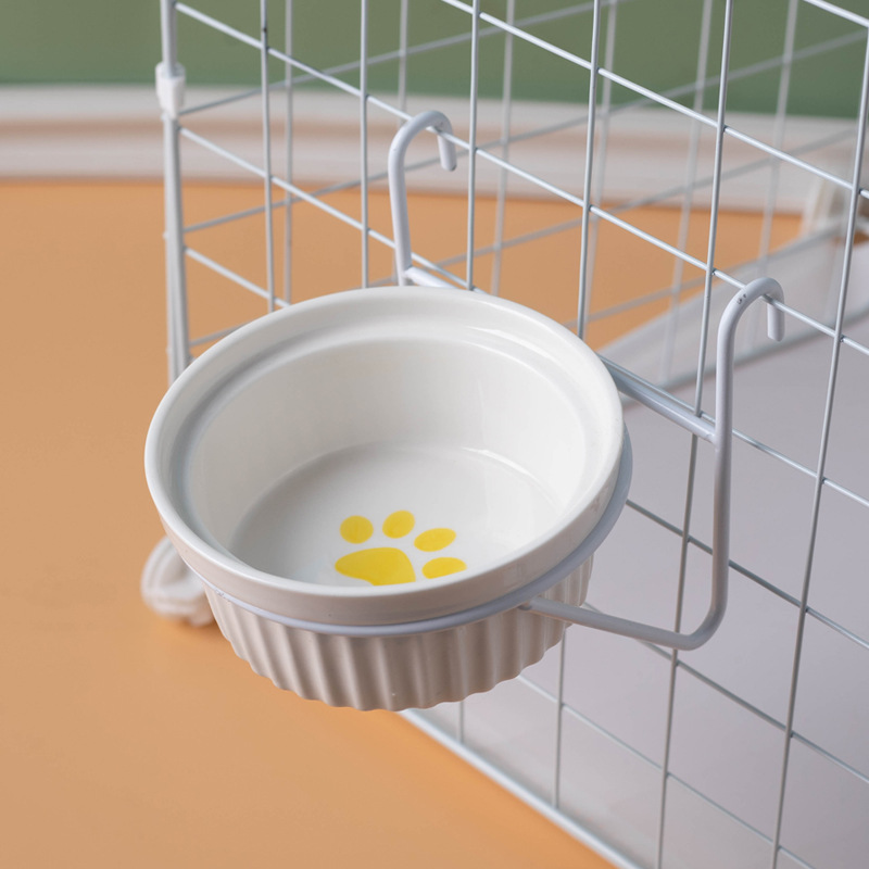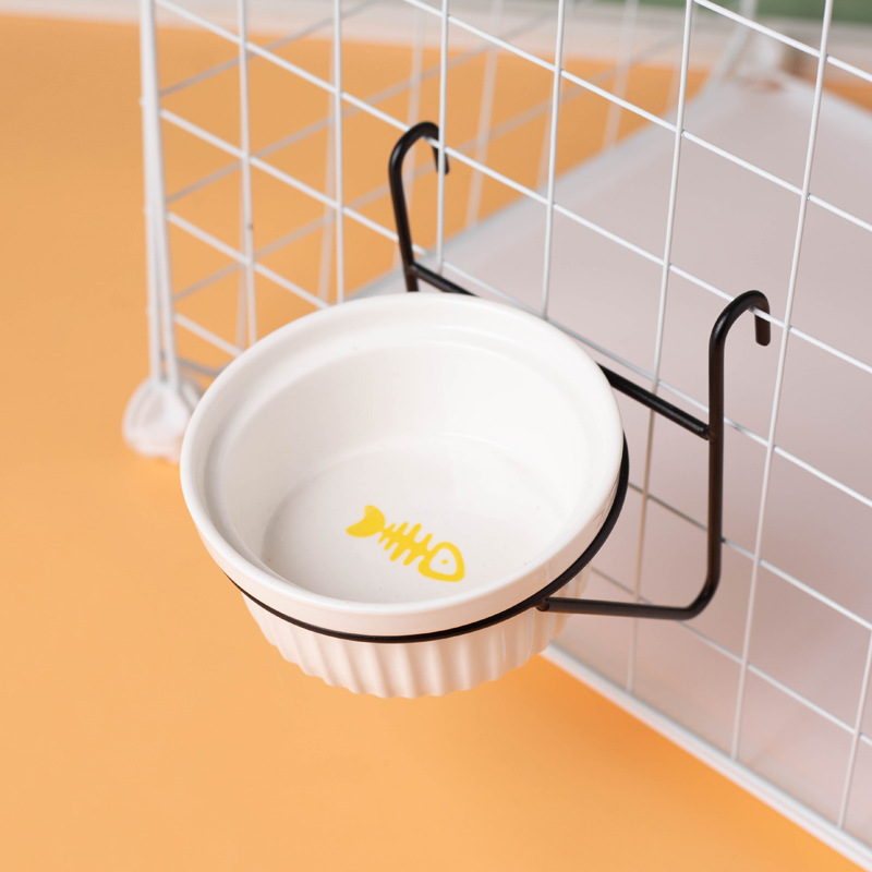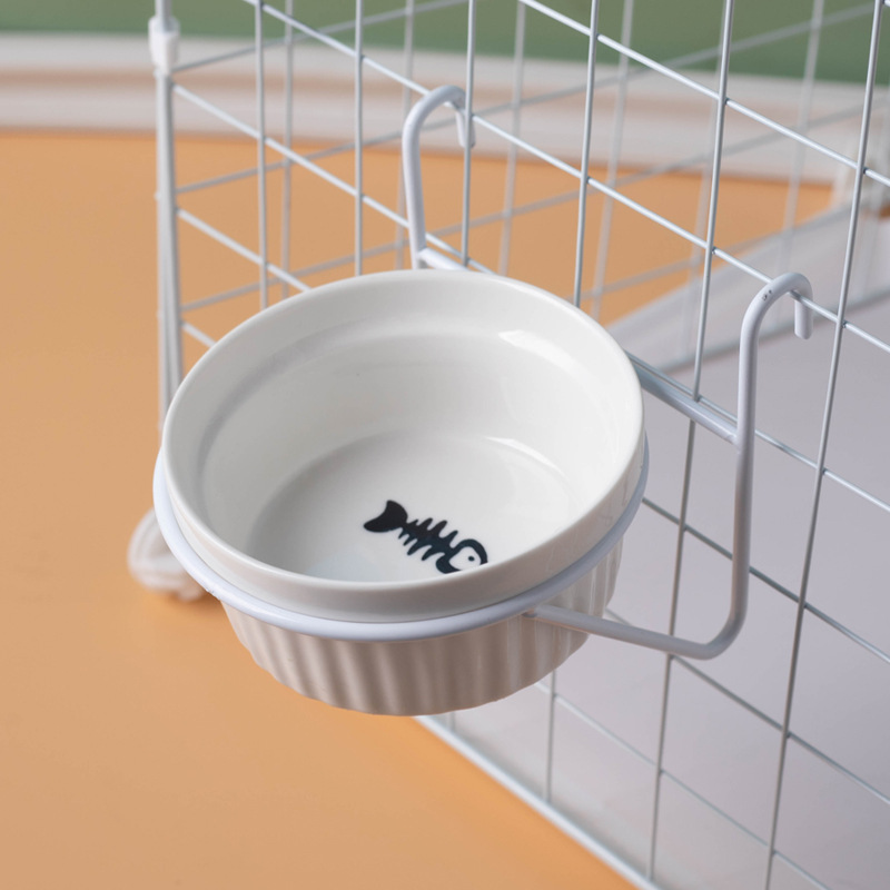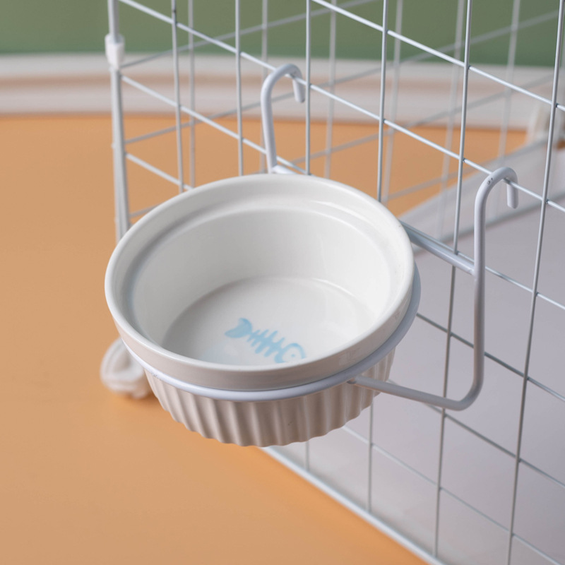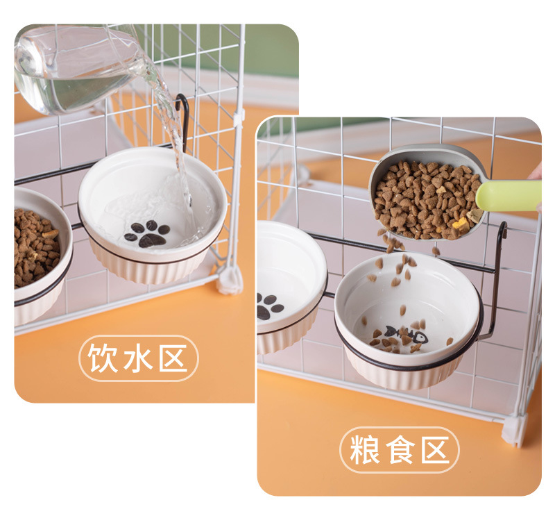 세라믹 고양이 그릇 전복 방지 고양이 음식 분지 교수형 마시는 그릇 고정 개 분지 교수형 케이지 애완 동물 그릇 강아지 새끼 고양이 그릇