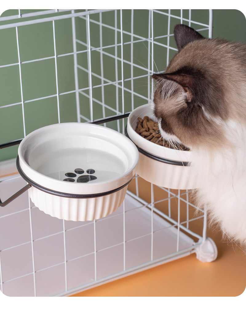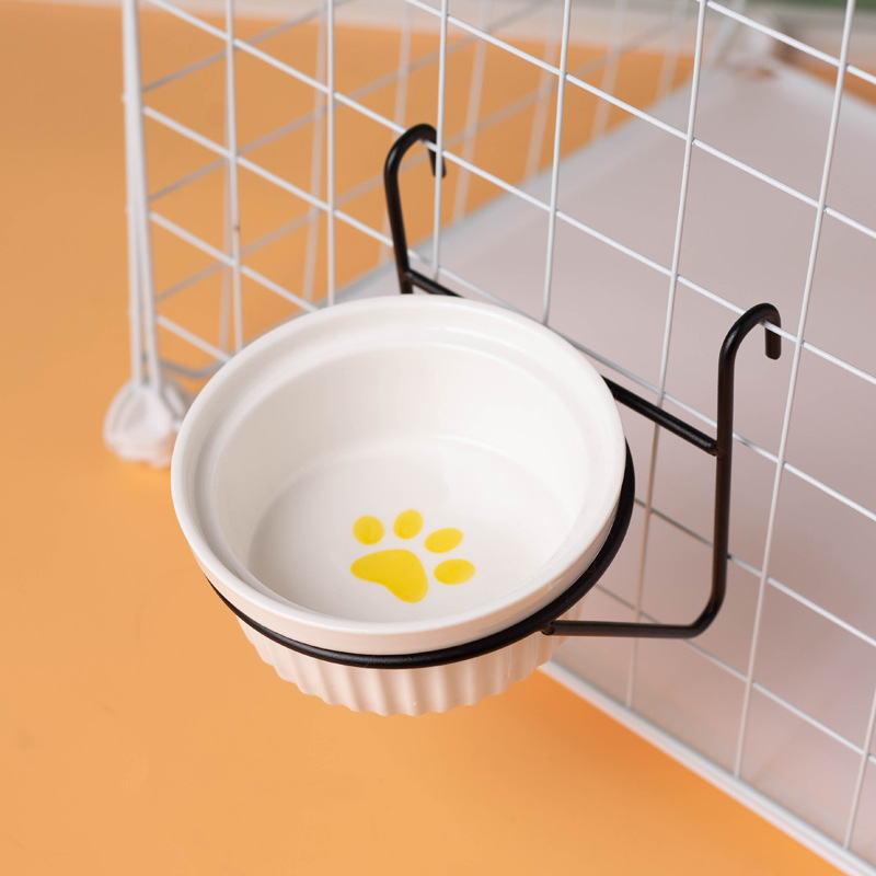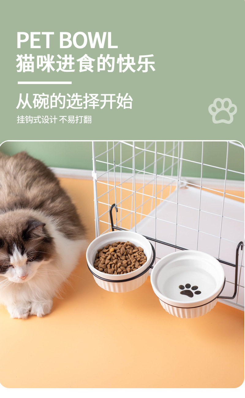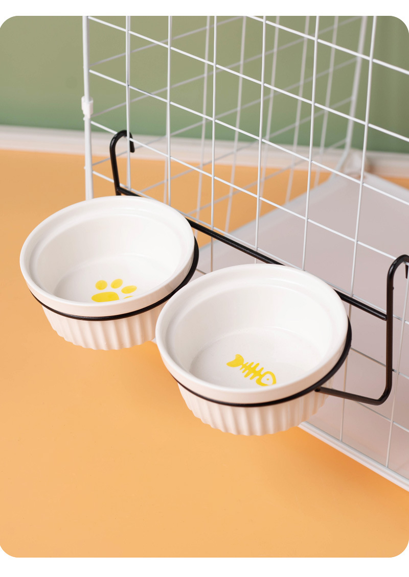 세라믹 고양이 그릇 전복 방지 고양이 음식 분지 교수형 마시는 그릇 고정 개 분지 교수형 케이지 애완 동물 그릇 강아지 새끼 고양이 그릇스토어 가기