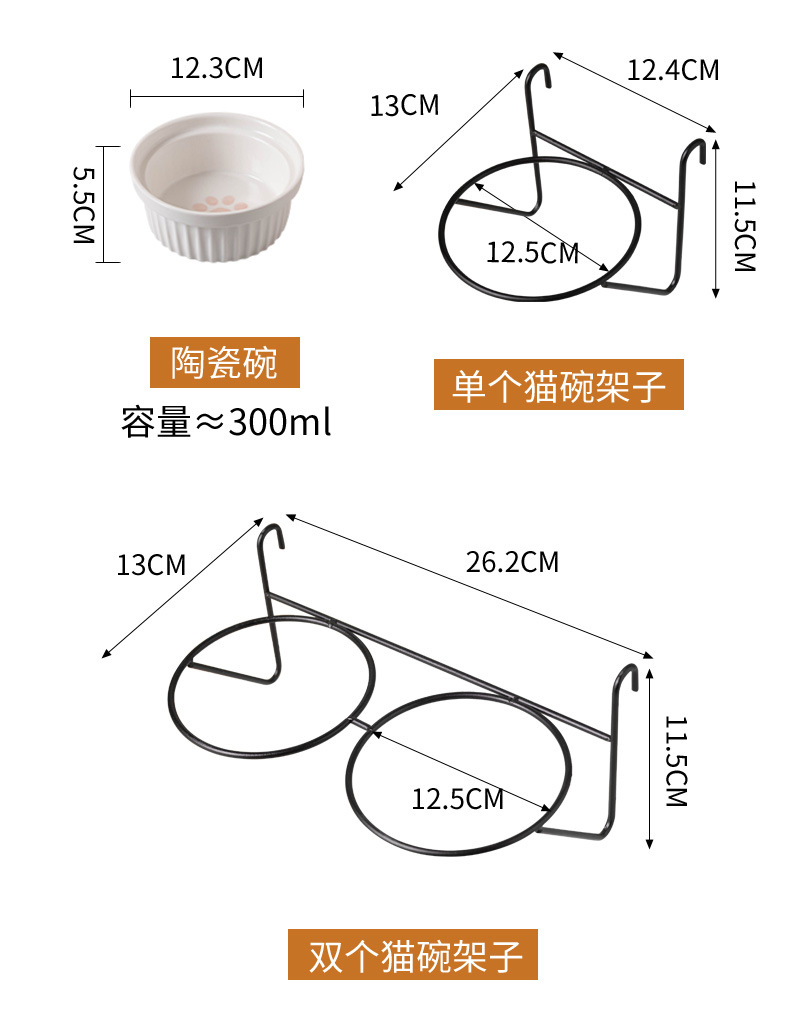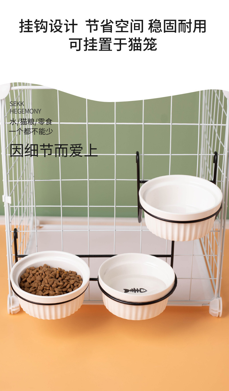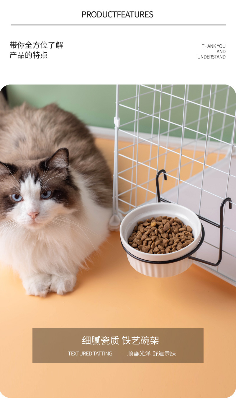 세라믹 고양이 그릇 전복 방지 고양이 음식 분지 교수형 마시는 그릇 고정 개 분지 교수형 케이지 애완 동물 그릇 강아지 새끼 고양이 그릇스토어 가기