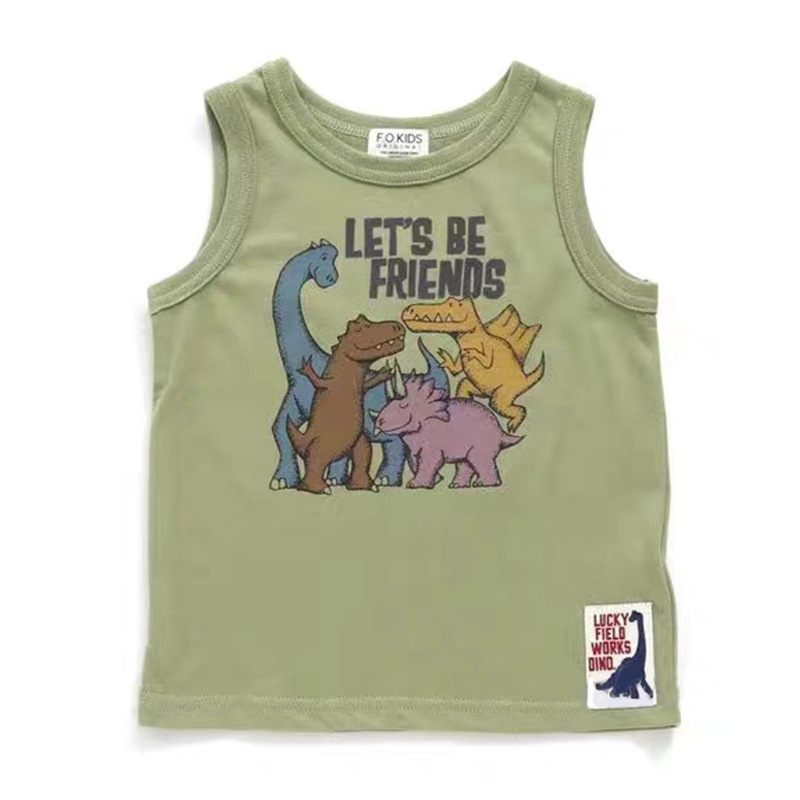 대형 아동복 2023 아동복 유행 멋진 공룡 3 색 패턴 캐주얼 민소매 조끼스토어 가기