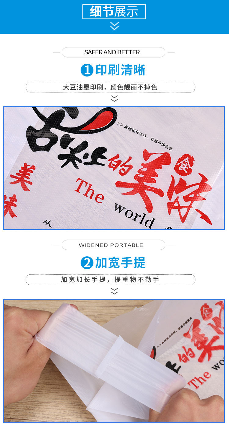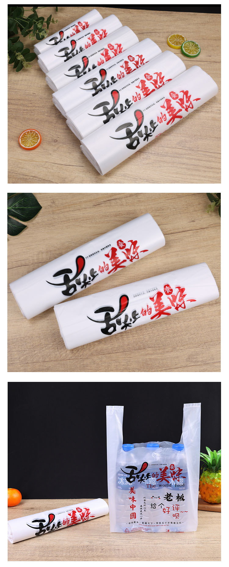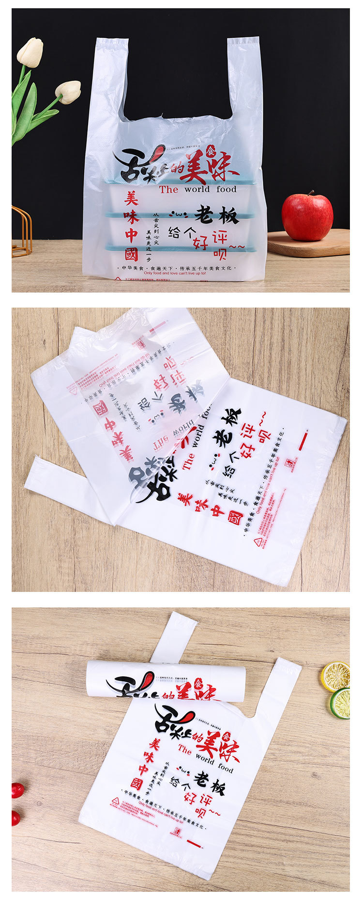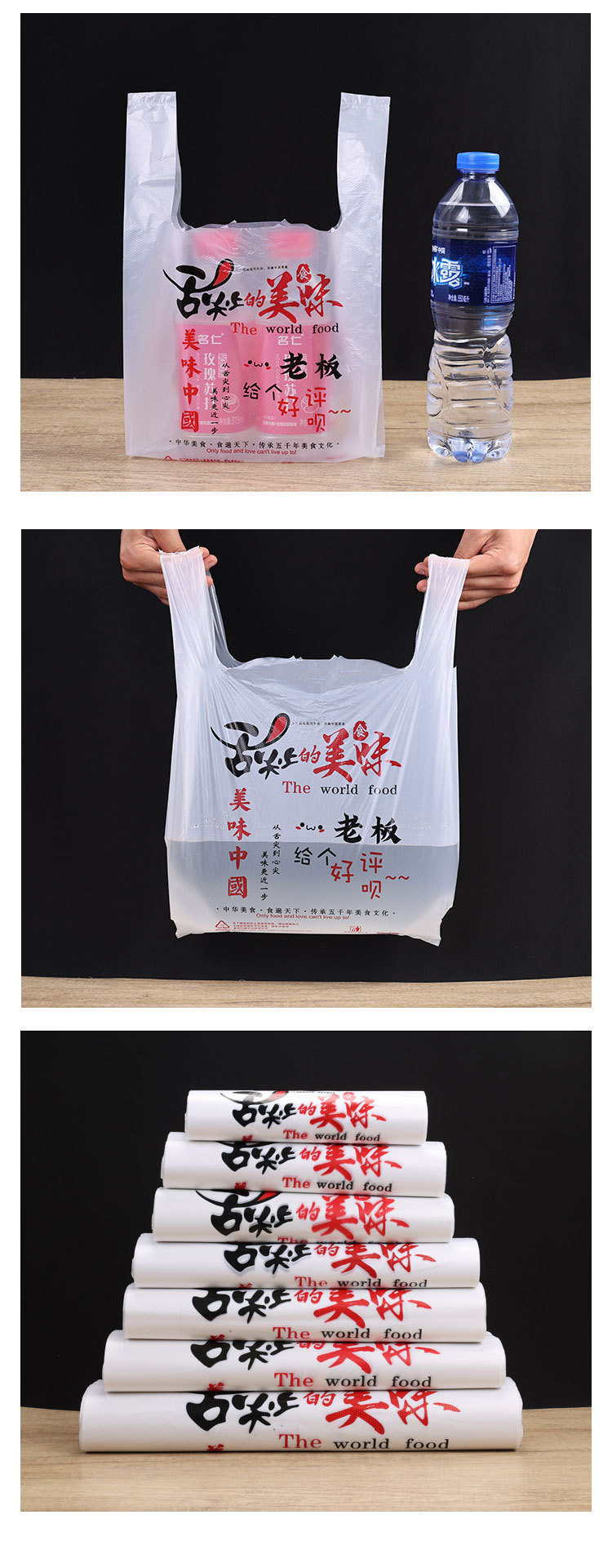 테이크 아웃 포장 가방 도매 두꺼운 혀 맛있는 일회용 비닐 봉투 휴대용 케이터링 과일 바베큐 조끼 가방스토어 가기